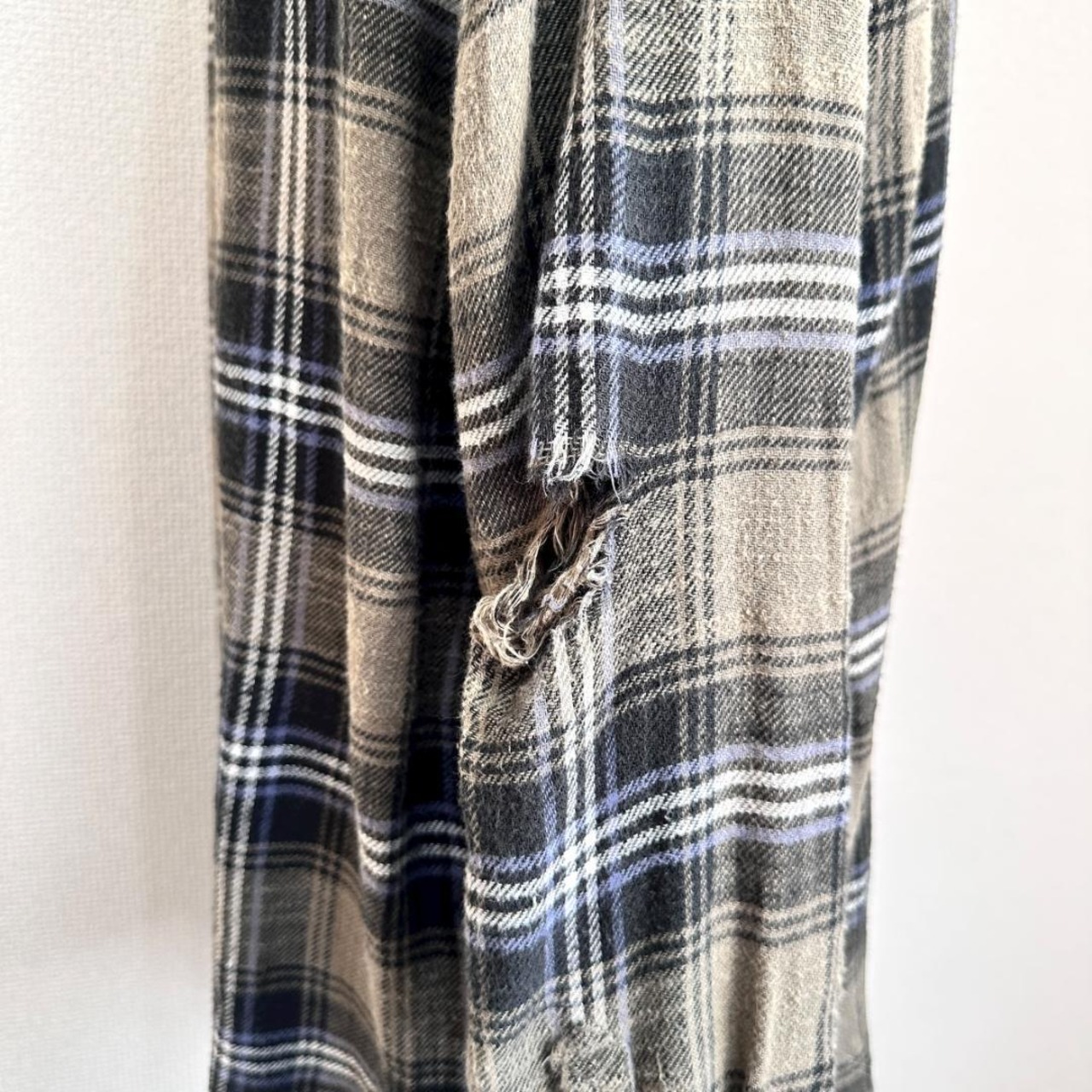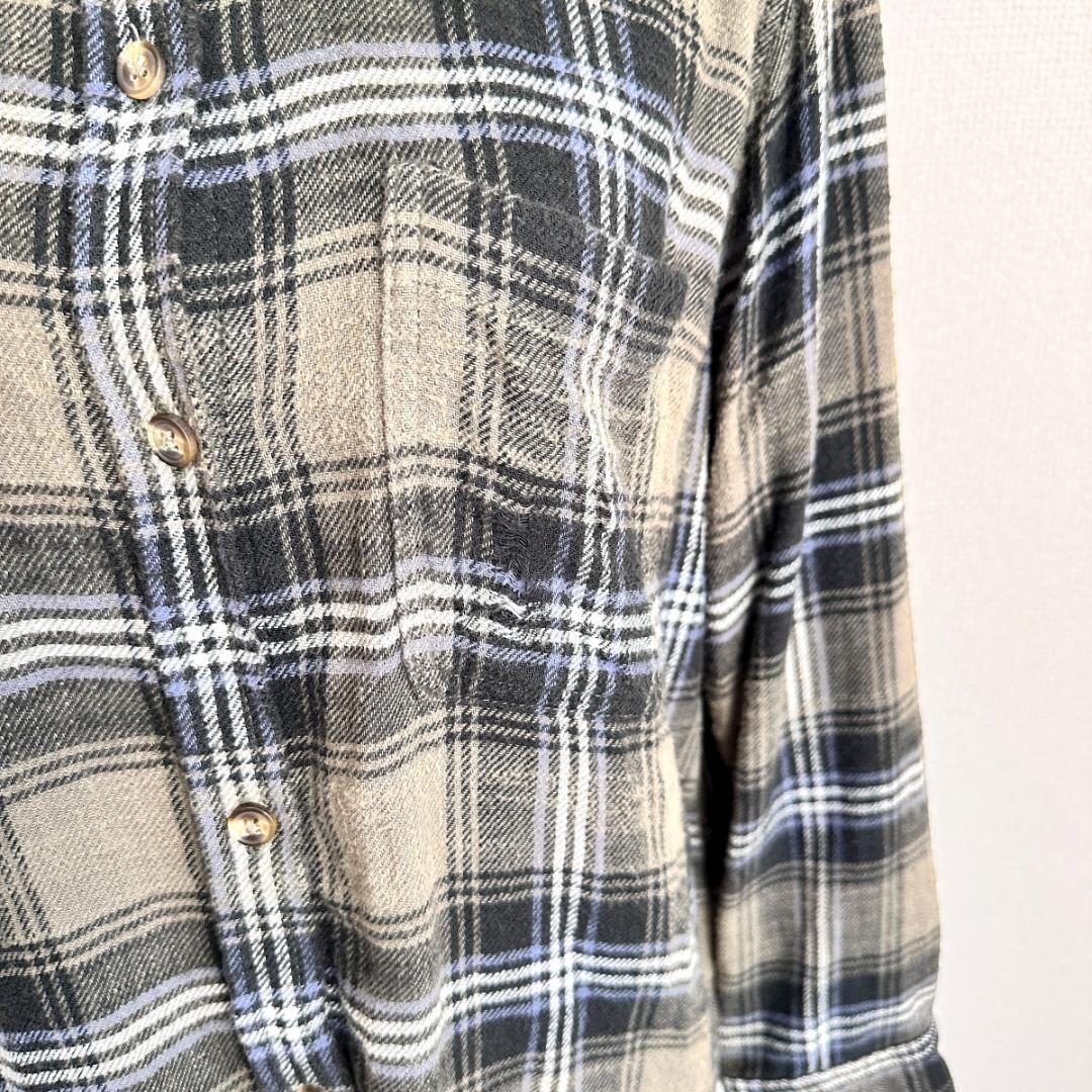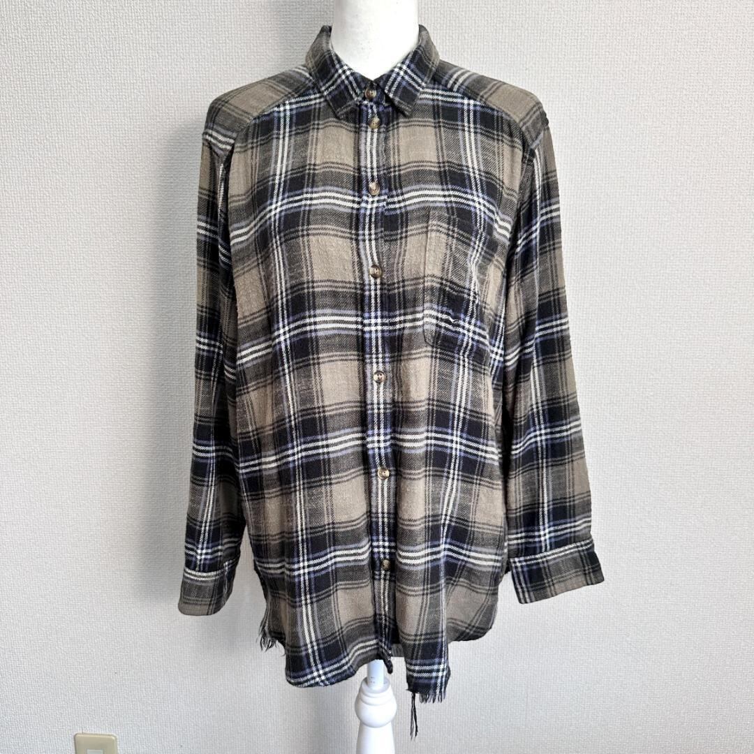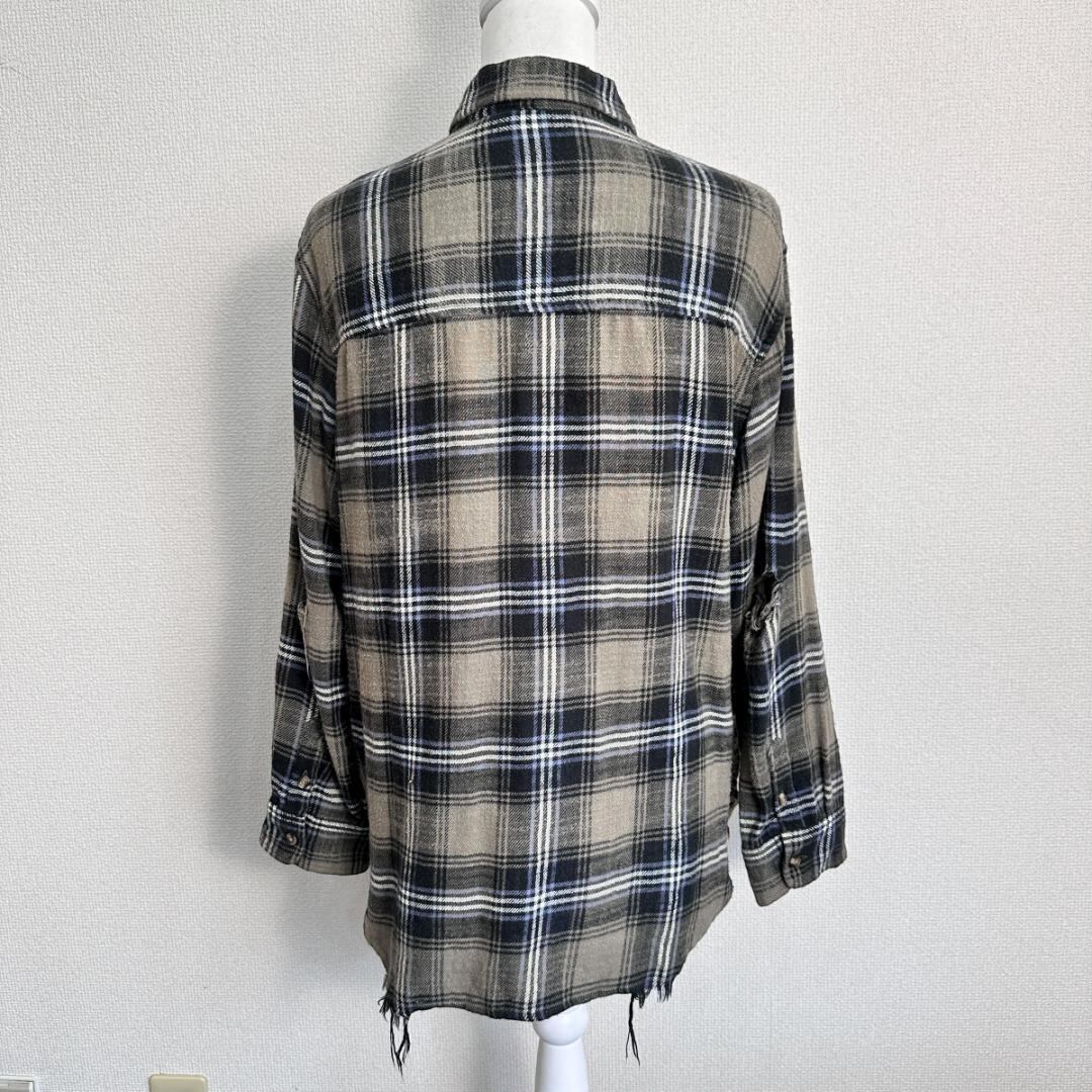 AMERICAN EAGLE(アメリカンイーグル)のダメージリメイクシャツです。グリーン系カラーをベースに、ダメージ加工やリメイク風のデザインが施された、存在感のある一着。程よくラフな雰囲気があり、古着スタイルやストリート、カジュアルコーデの主役として活躍します。一枚着はもちろん、羽織りとしても使いやすいアイテムです。