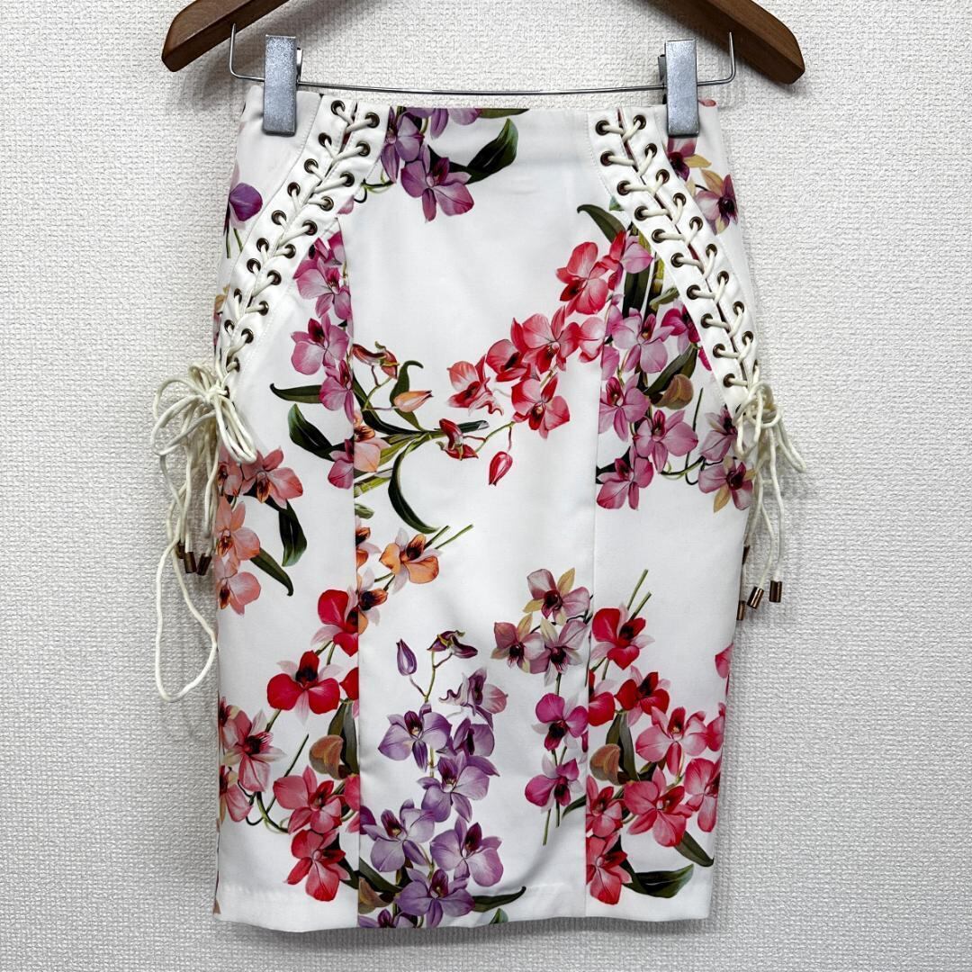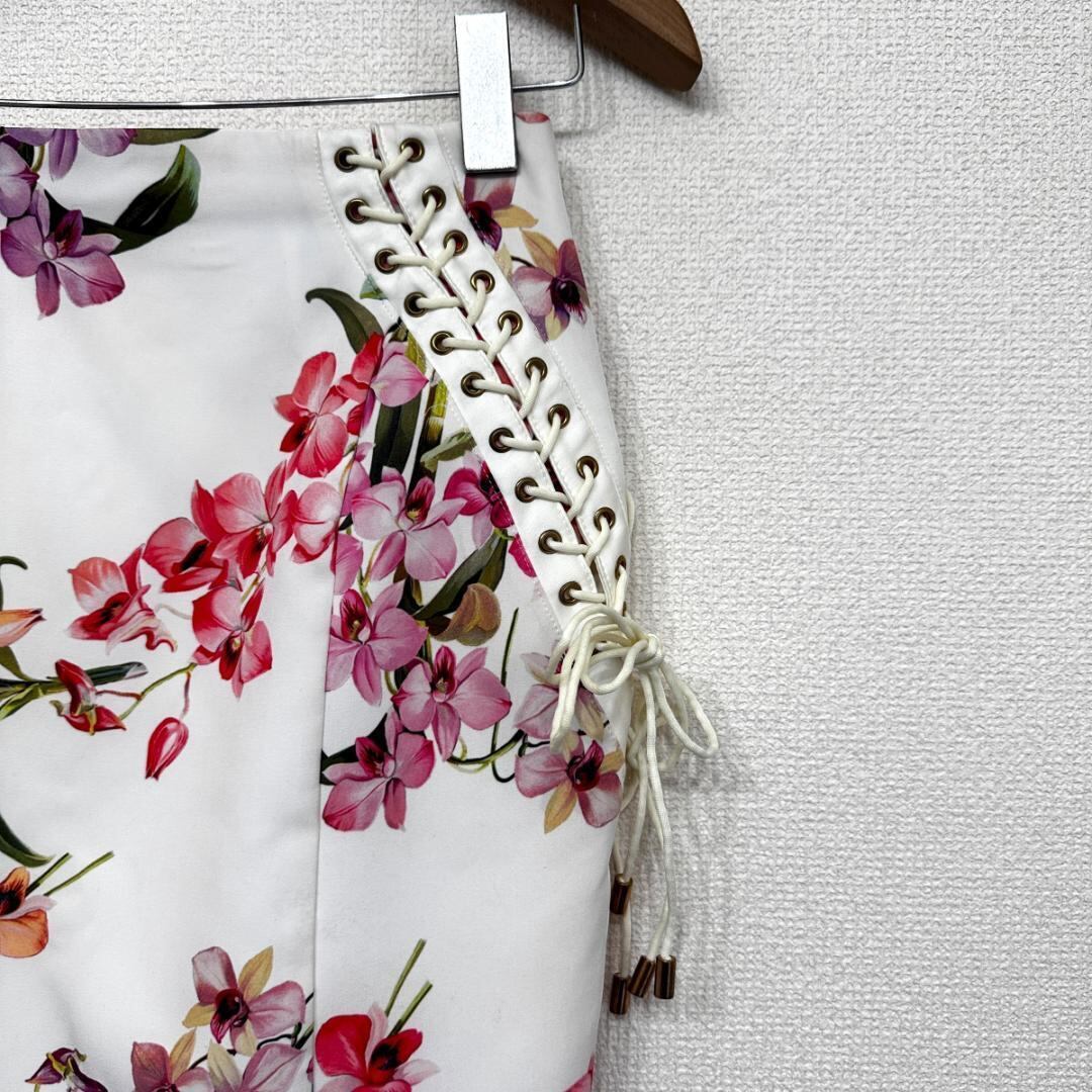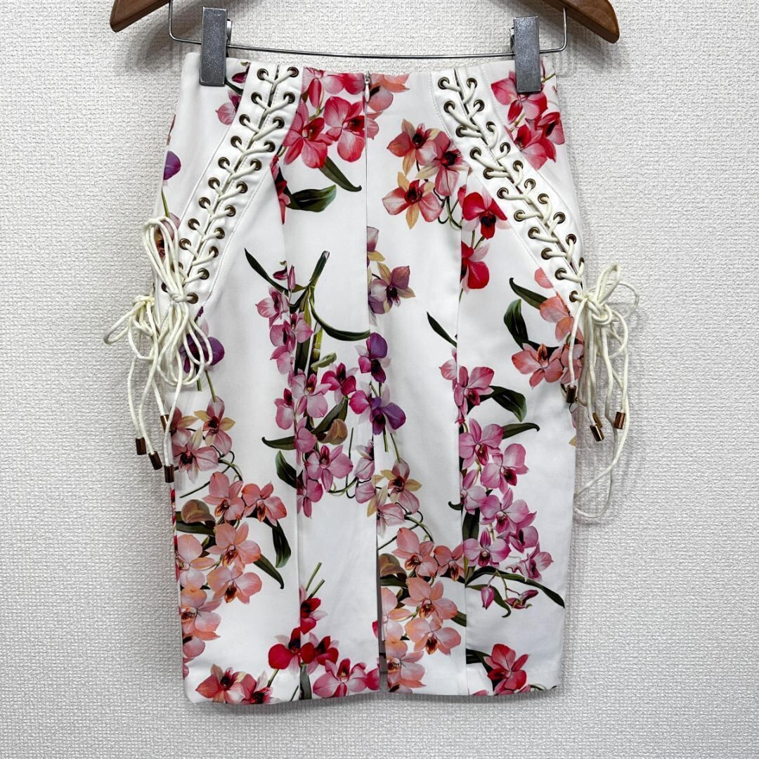 sifflet(シフレ)の花柄スカートです。白地に花柄があしらわれたデザインで、爽やかさと可愛らしさを兼ね備えた一着。コーディネートに取り入れるだけで明るい印象になり、シンプルなトップスと合わせるだけでもバランス良くまとまります。春夏シーズンを中心に、軽やかなスタイリングが楽しめるアイテムです。中古品のため、わずかな使用感がある場合があります。
