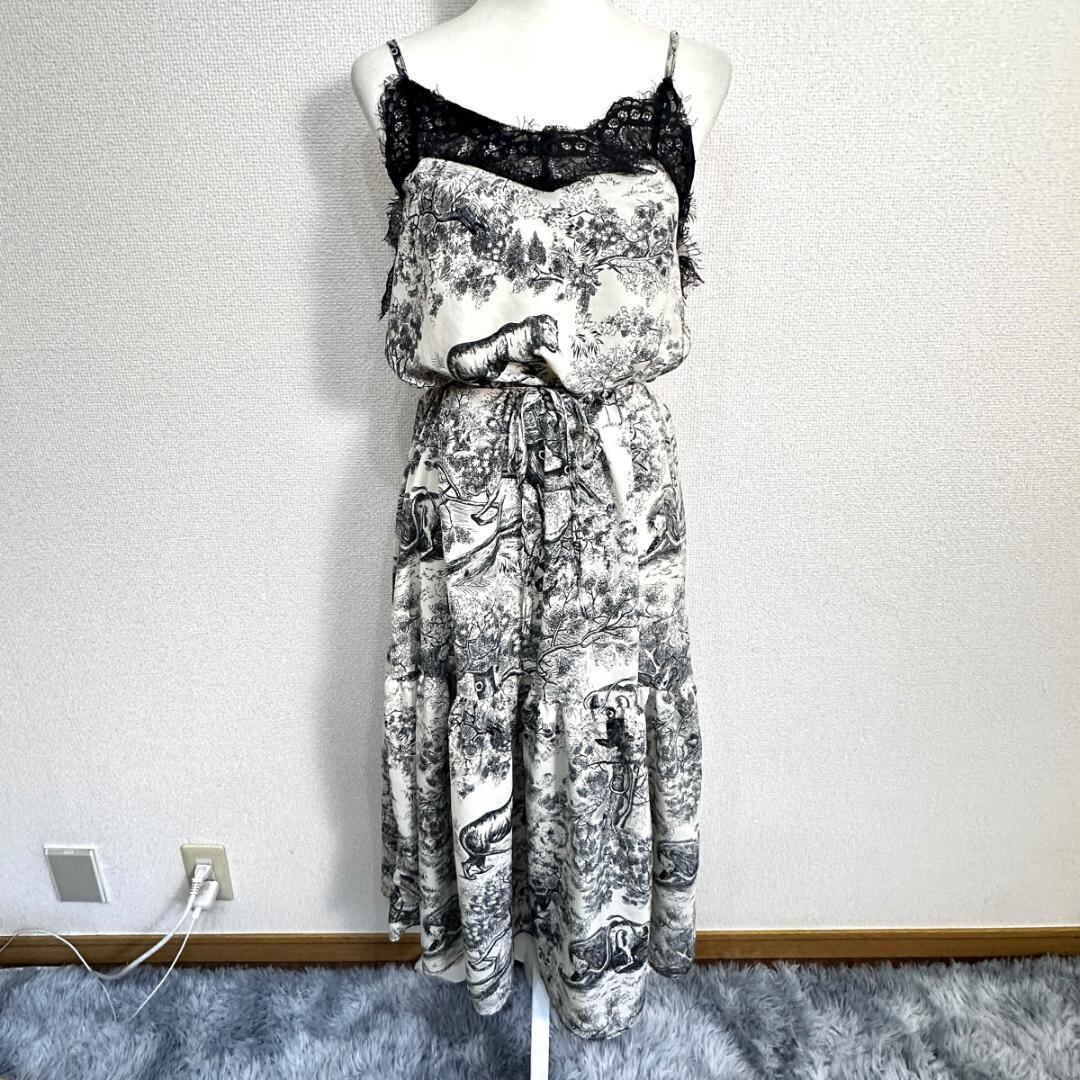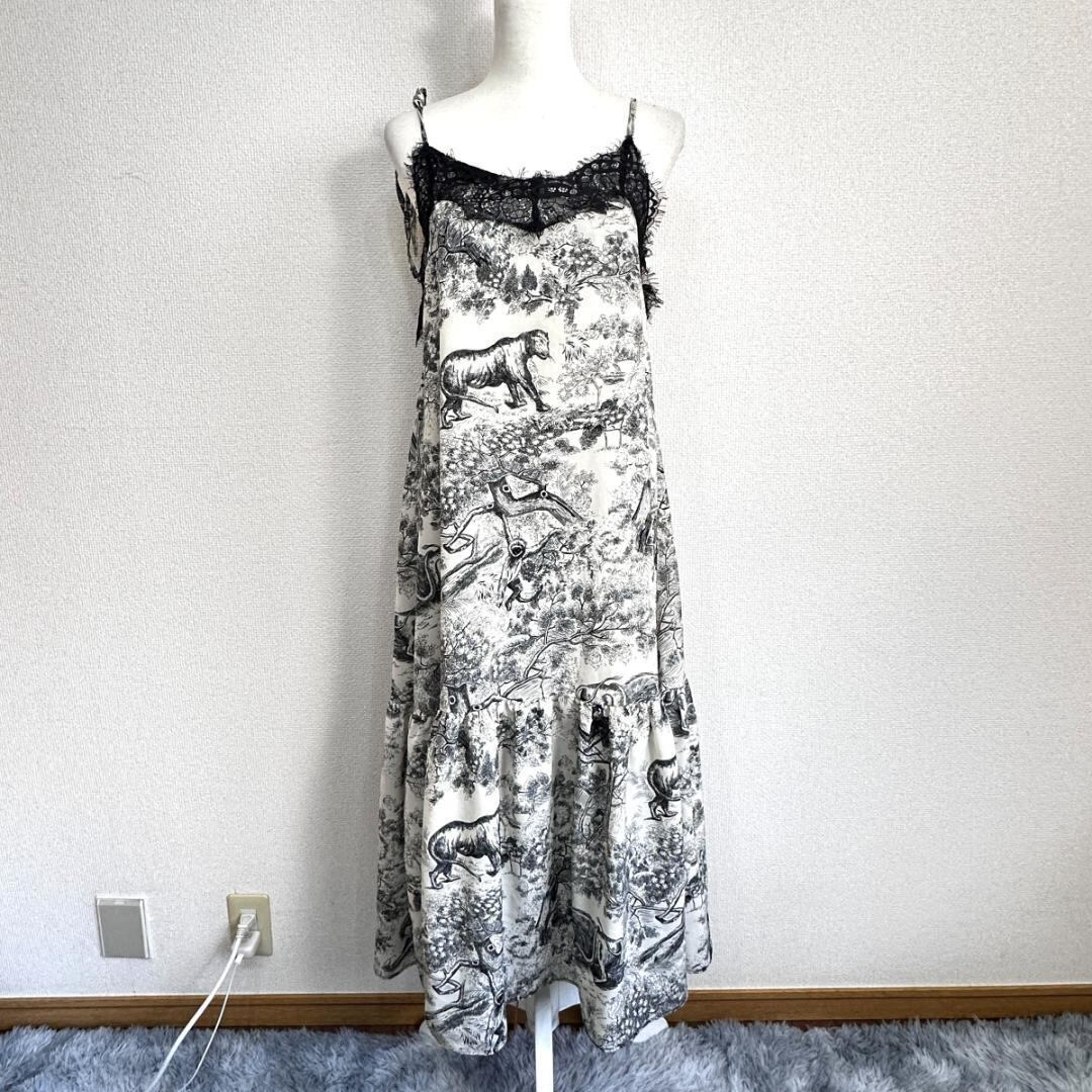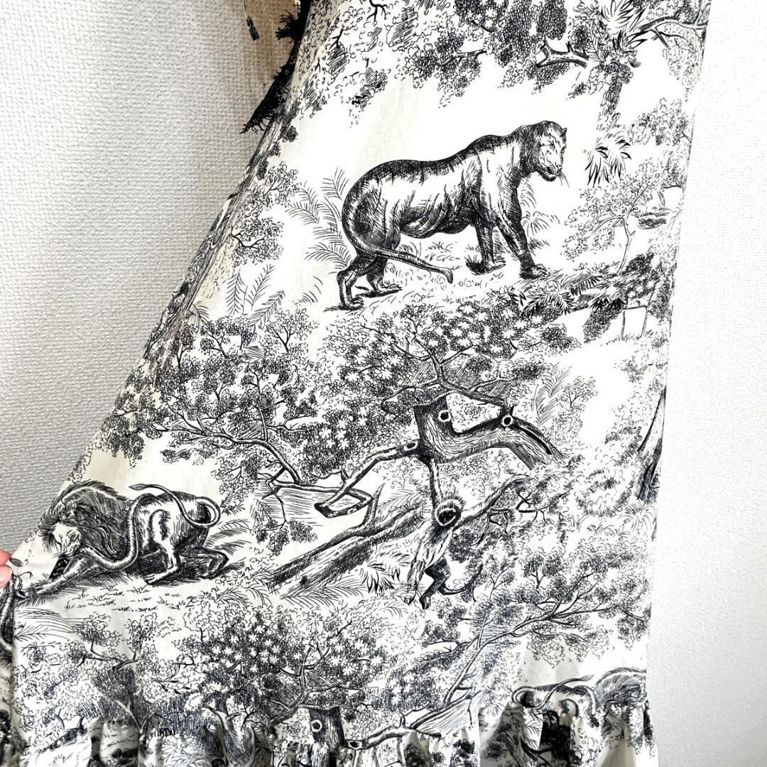ワンピース 森柄 白 サイズ表記・タグなし ※裾ほつれあり HR1749