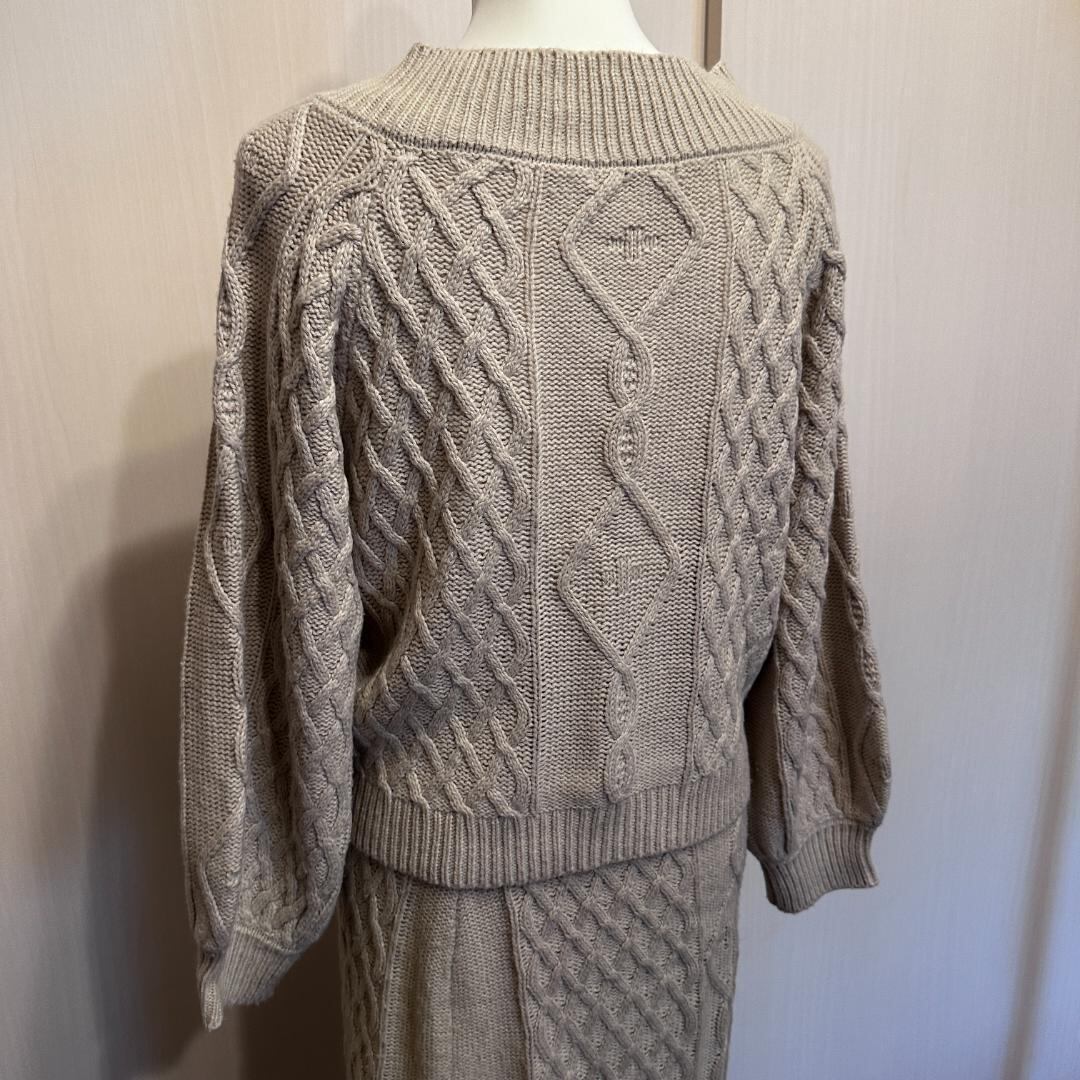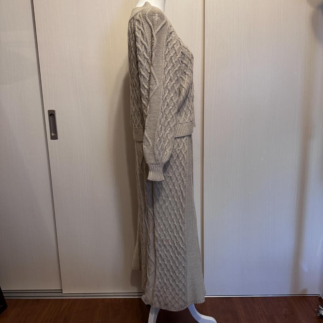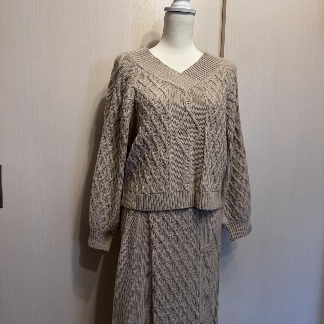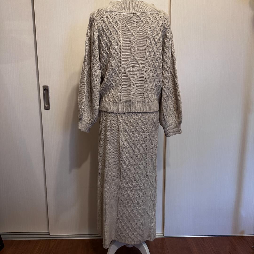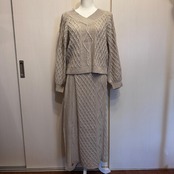 RETRO GIRLのニットセットアップ。ゆったりとしたバスト112cmでリラクシーな着心地のトップスと、スッキリとしたラインのスカートの組み合わせが魅力。柔らかいニット素材が快適で、単品でもセットでもコーディネートが楽しめます。カジュアルからフェミニンまで幅広く対応できる万能アイテムです。