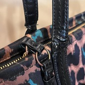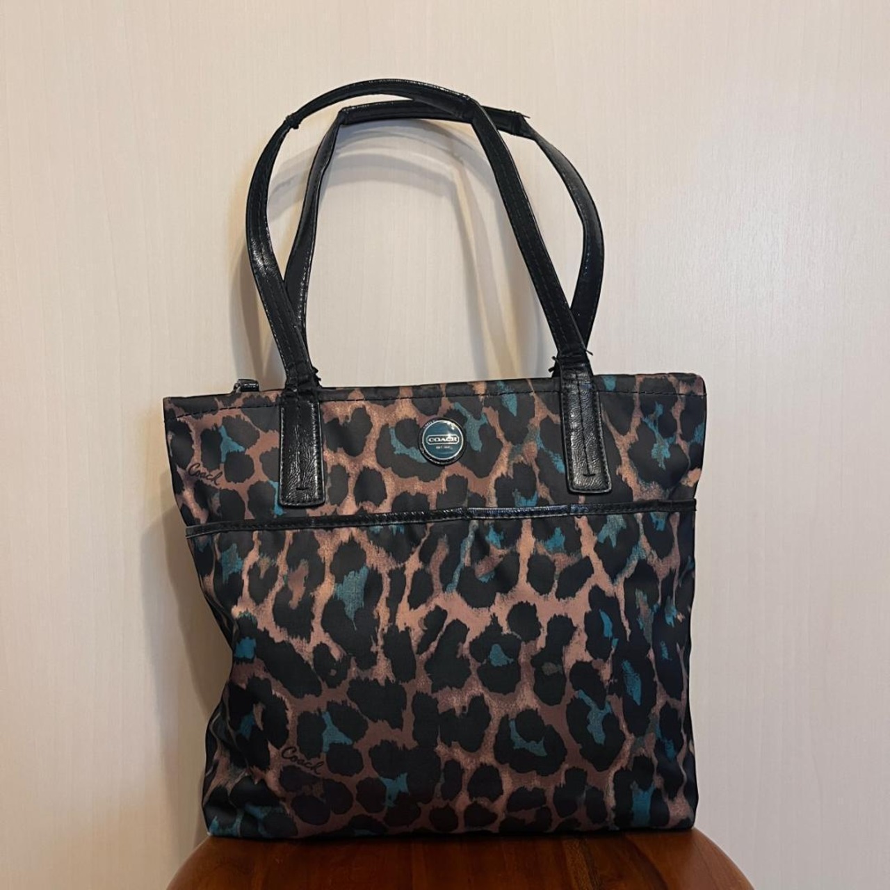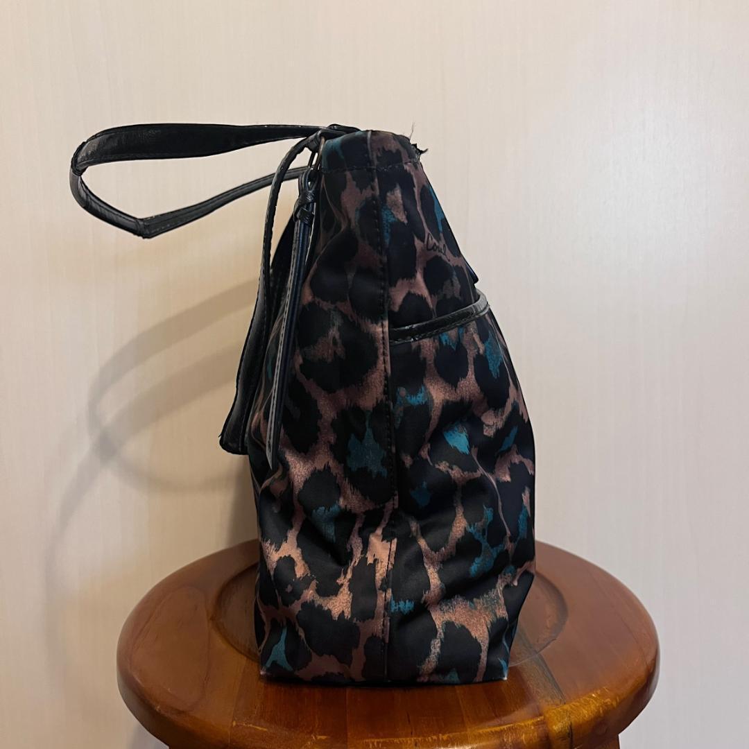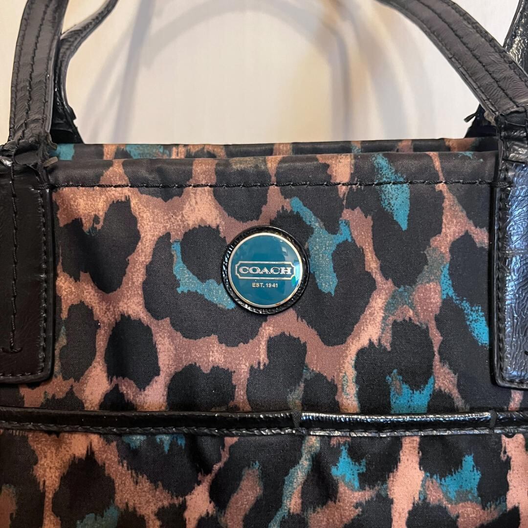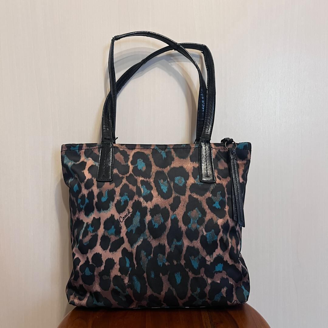 COACHの豹柄トートバッグ。存在感のあるアニマルプリントが特徴で、コーディネートのアクセントになるデザイン。収納力もあり、普段使いからお出かけまで幅広く活躍するアイテムです。