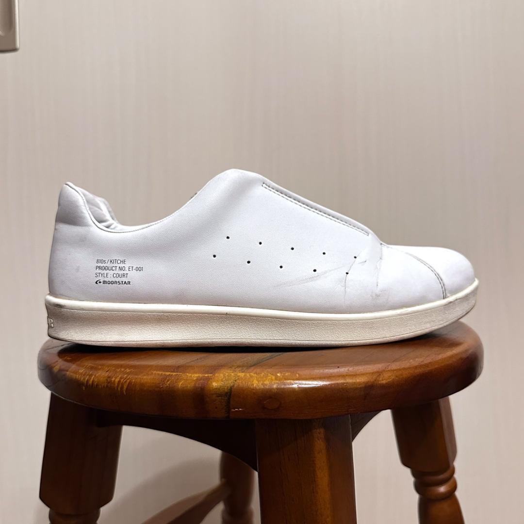 #moonSTAR の「KITCHE」シリーズ、紐なしタイプのホワイトスニーカーです。クリーンでシンプルなデザインは合わせるコーディネートを選ばず、カジュアルからきれいめまで幅広く対応。紐なし仕様で脱ぎ履きが簡単なのも魅力です。軽やかな履き心地で、デイリーユースはもちろん、旅行や仕事用としても活躍する実用性の高い一足です。