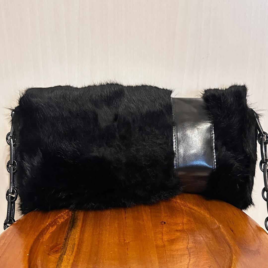 ふわふわとしたフェイクファー素材が目を惹くデザインで、秋冬コーデにぴったりの存在感をプラス。コンパクトなサイズ感ながらマチがあり、財布やスマホなど必要な小物をしっかり収納可能。シンプルなスタイリングのアクセントとして活躍するアイテムです。
