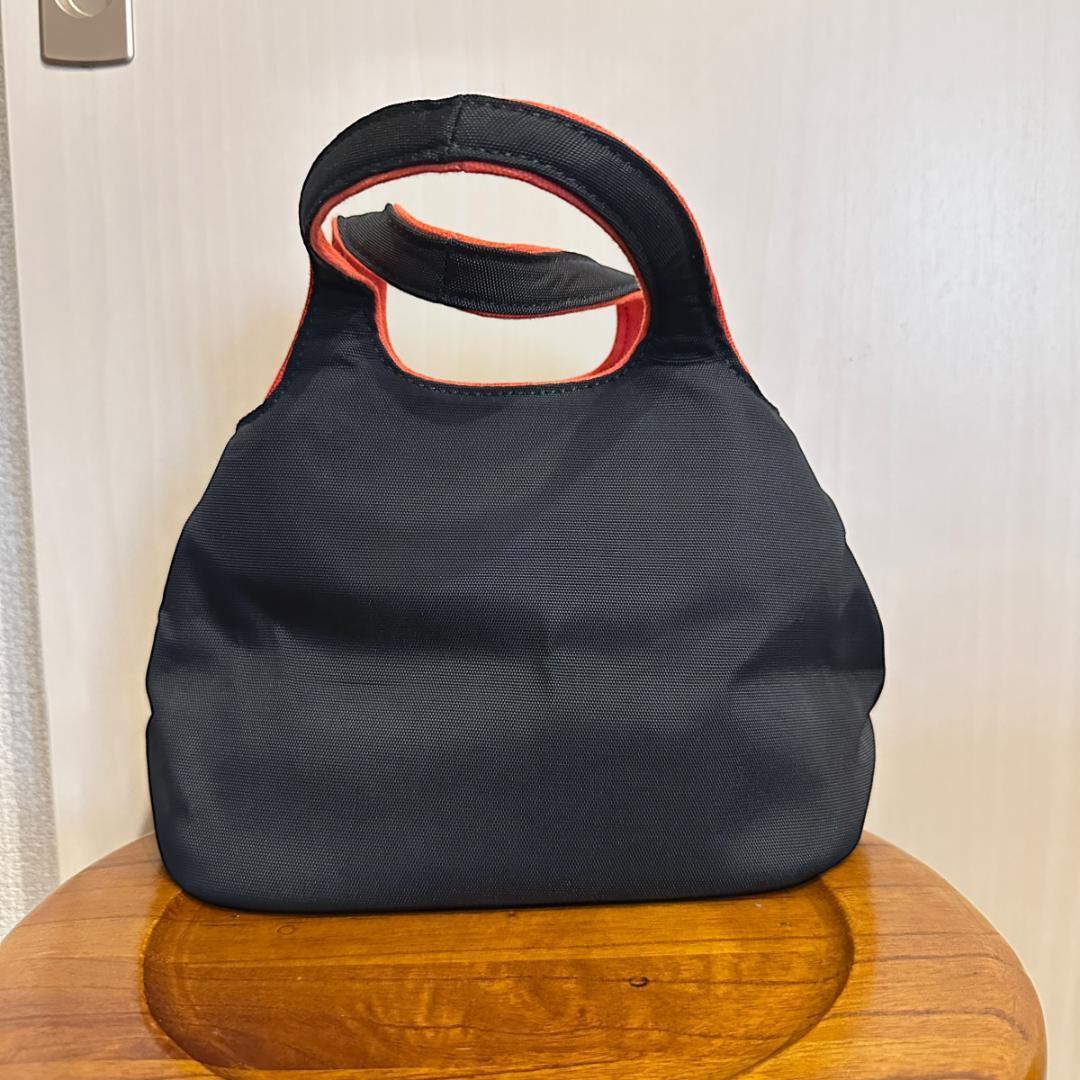 持ち手付きで手持ちも可能、コーディネートにアクセントを加えるアイテムです。