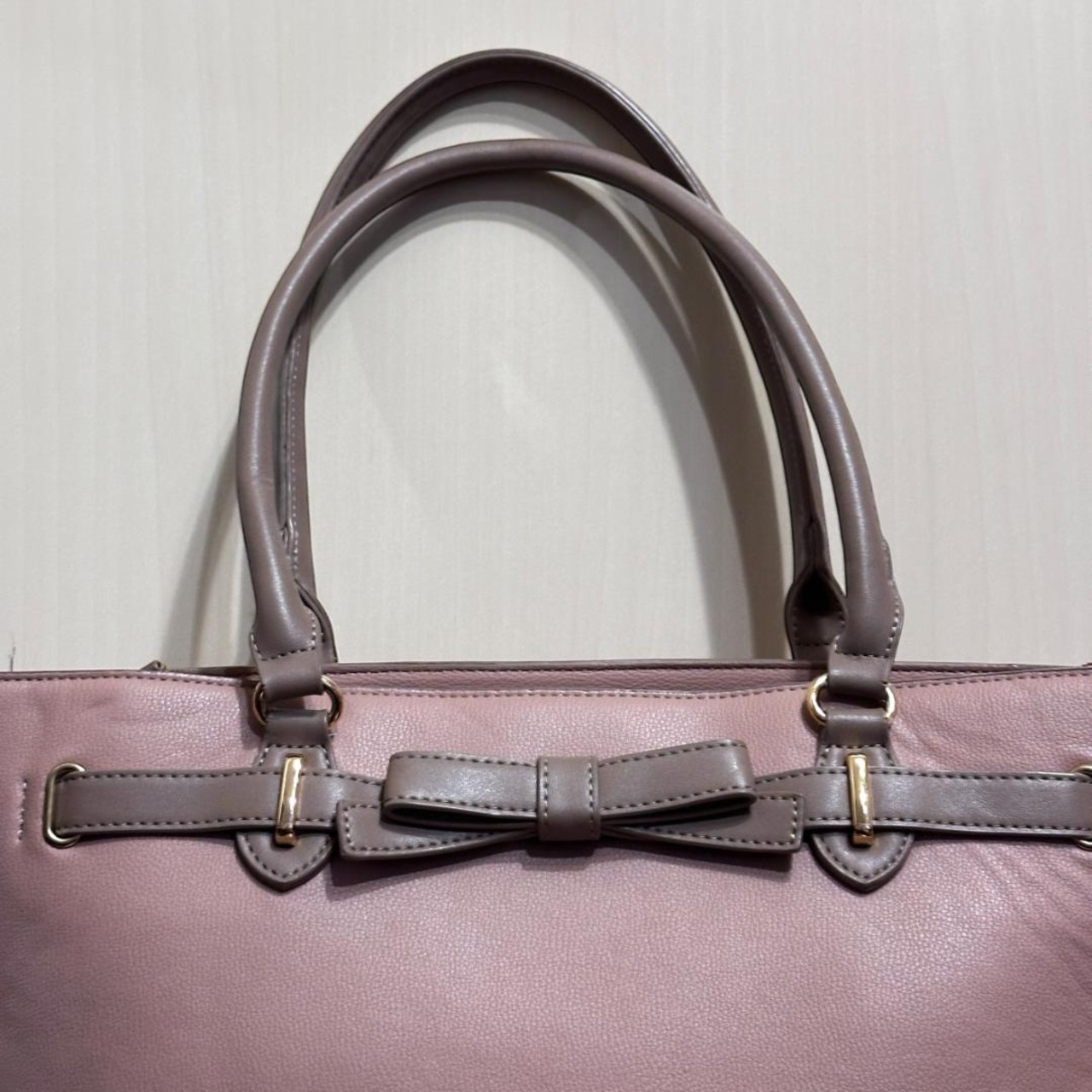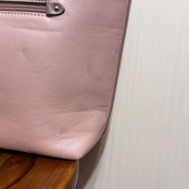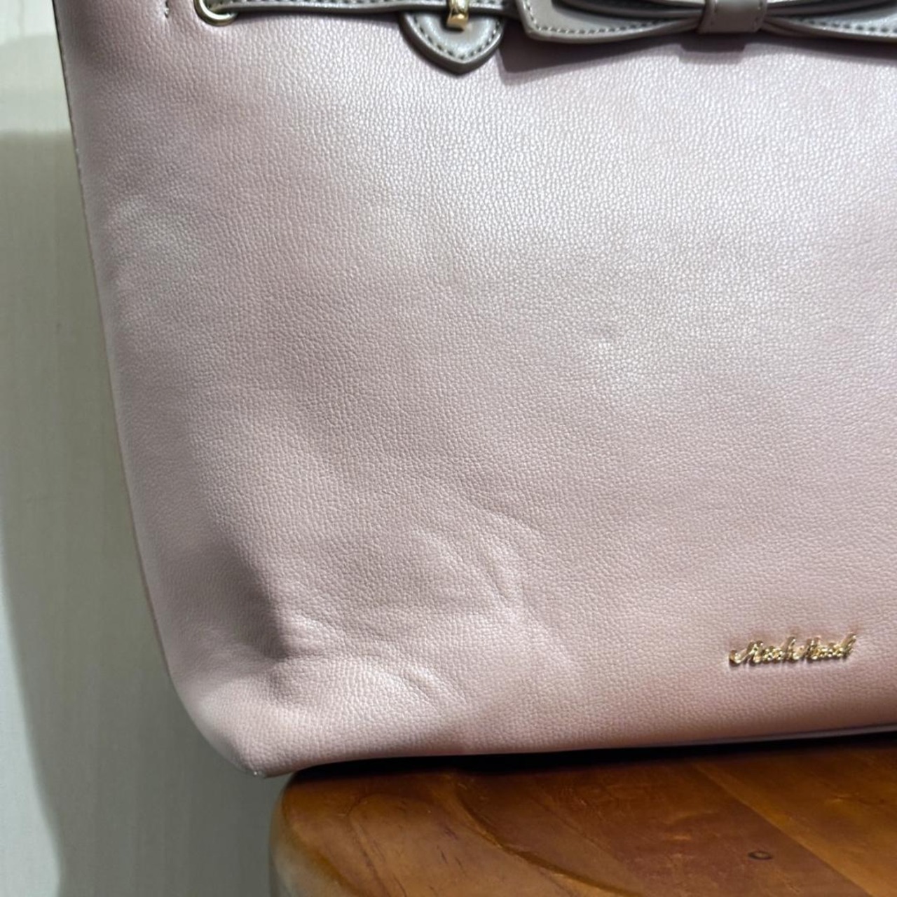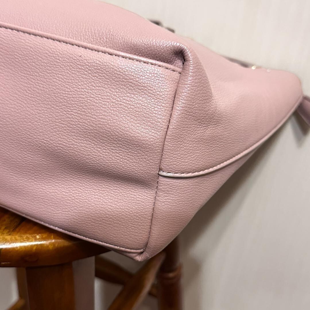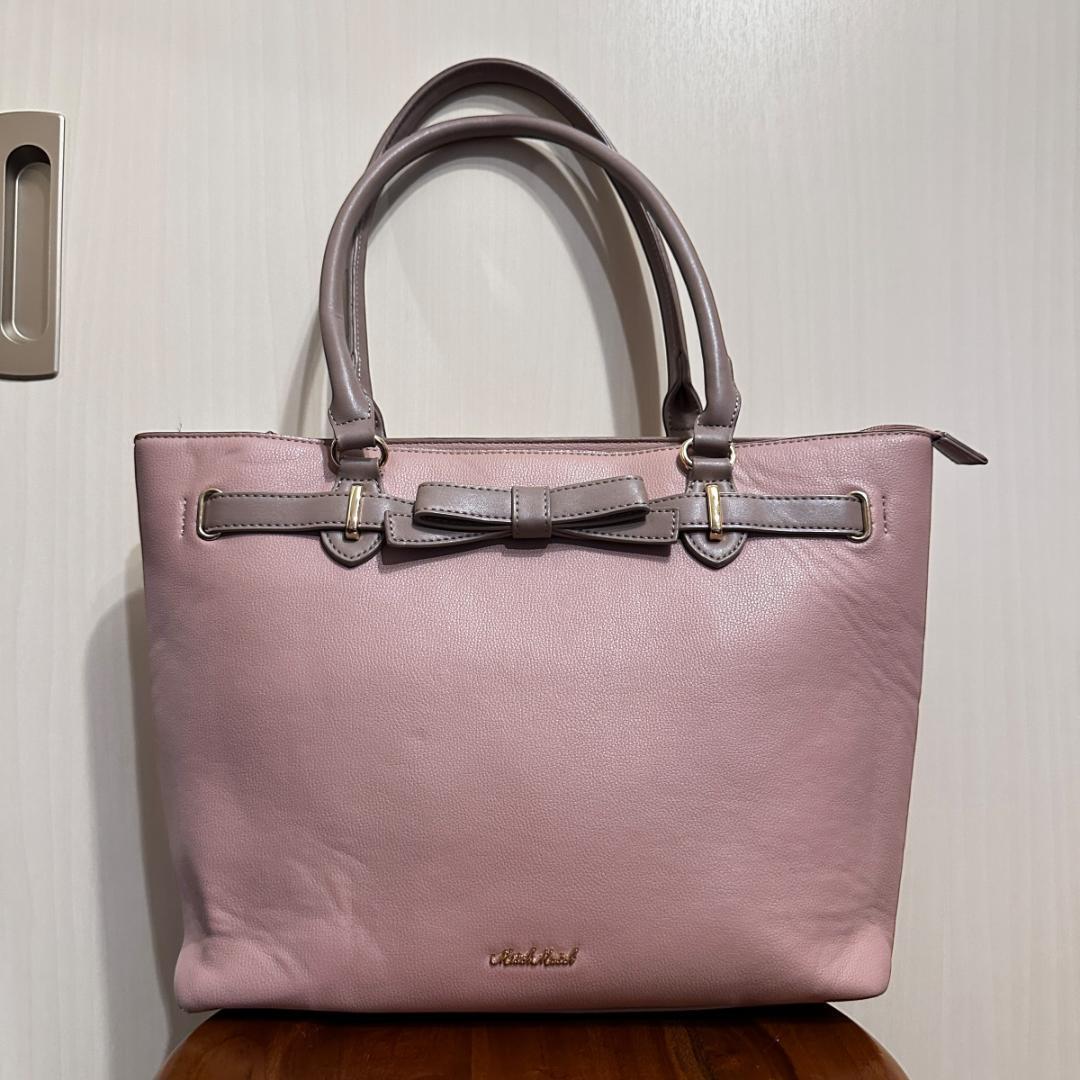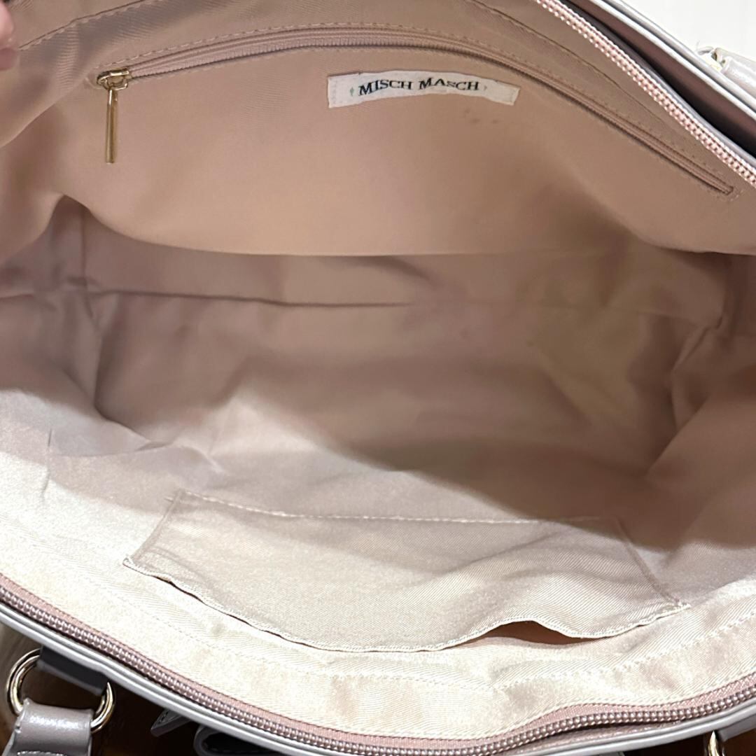 MISCH MASCH(ミッシュマッシュ)のトートバッグ、ピンクにブラウンリボンがアクセントの可愛らしいデザイン。