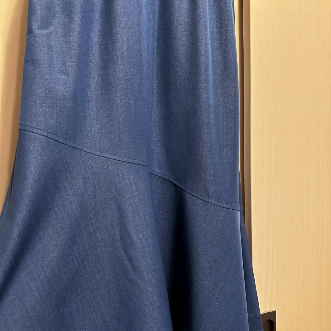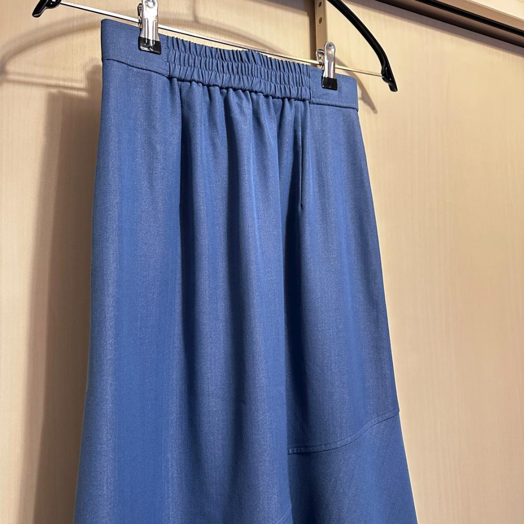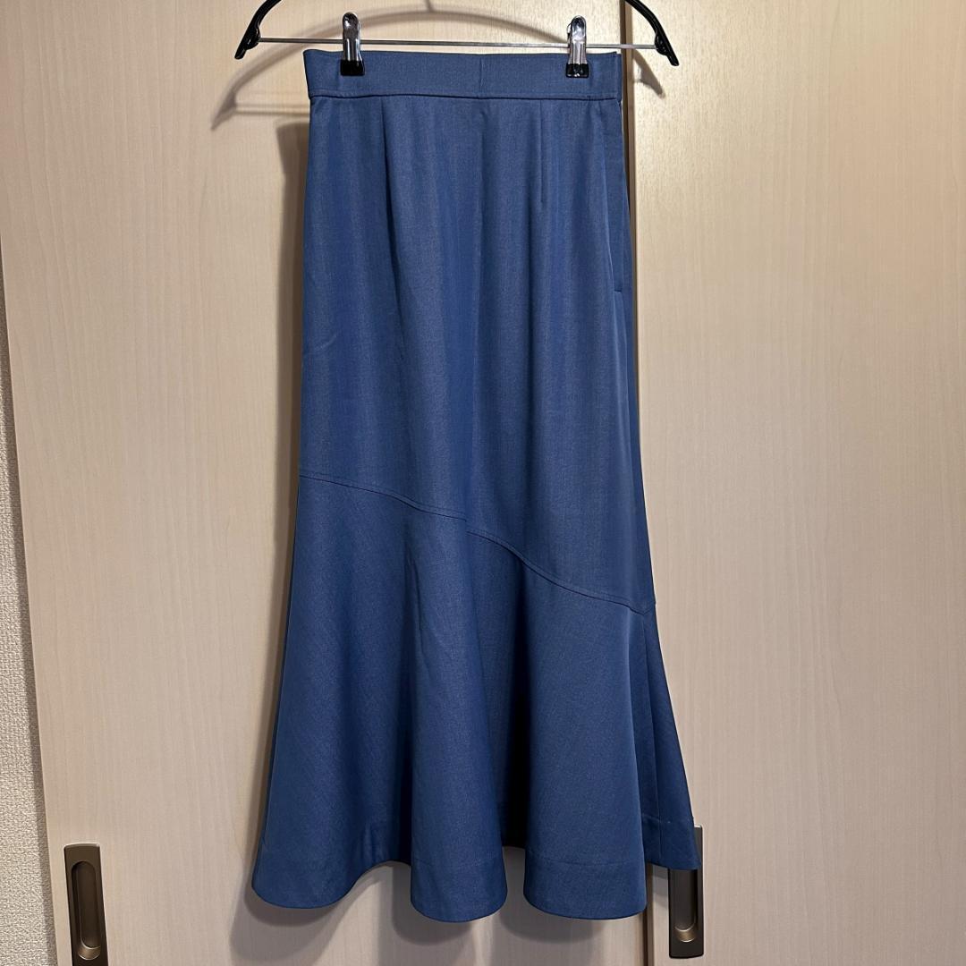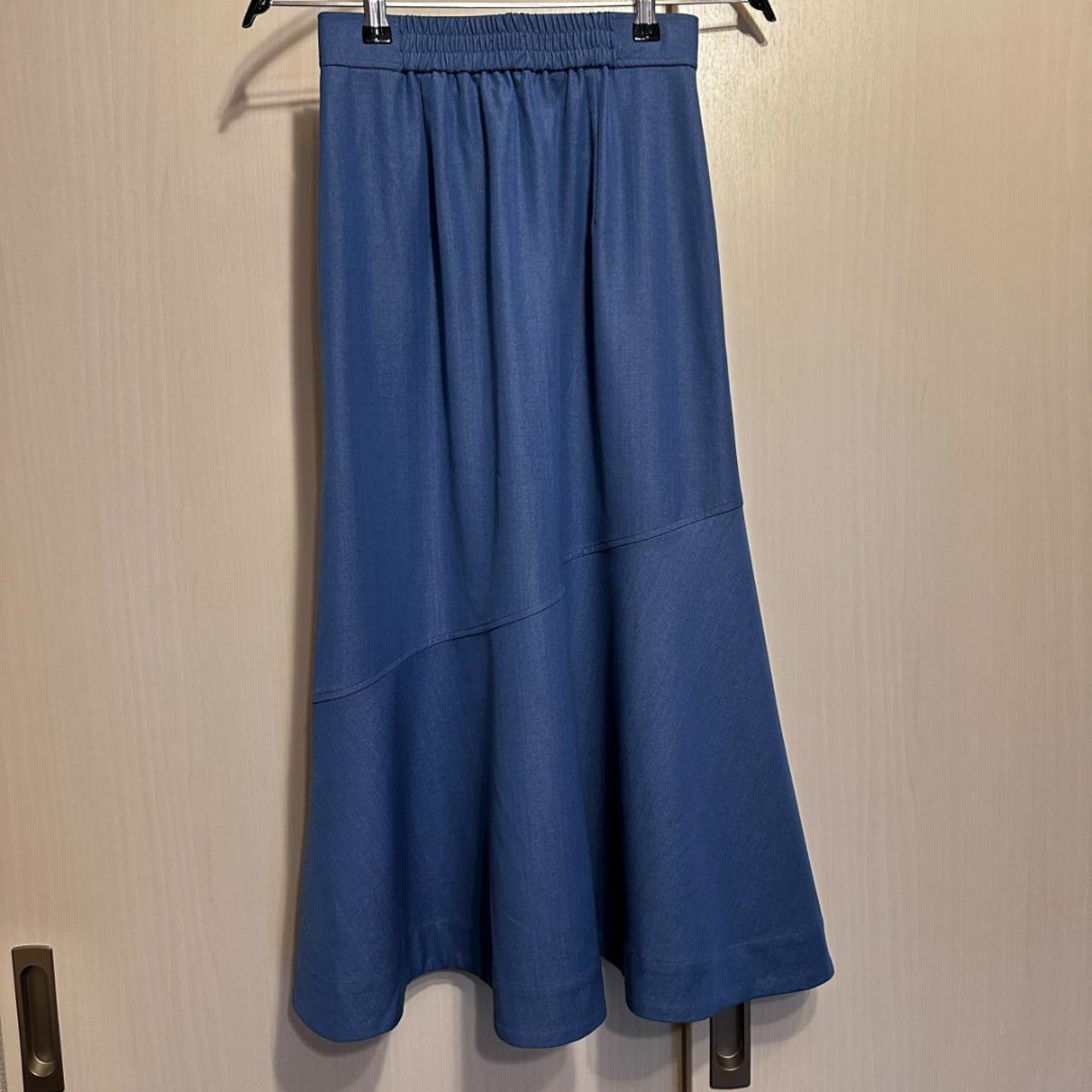 PLST(プラステ)のブルーマーメイドスカートです。裾にかけて広がるマーメイドシルエットが女性らしい印象を演出。シンプルながら上品なデザインで、オフィスやお出かけ、きれいめコーディネートに最適な一枚です。