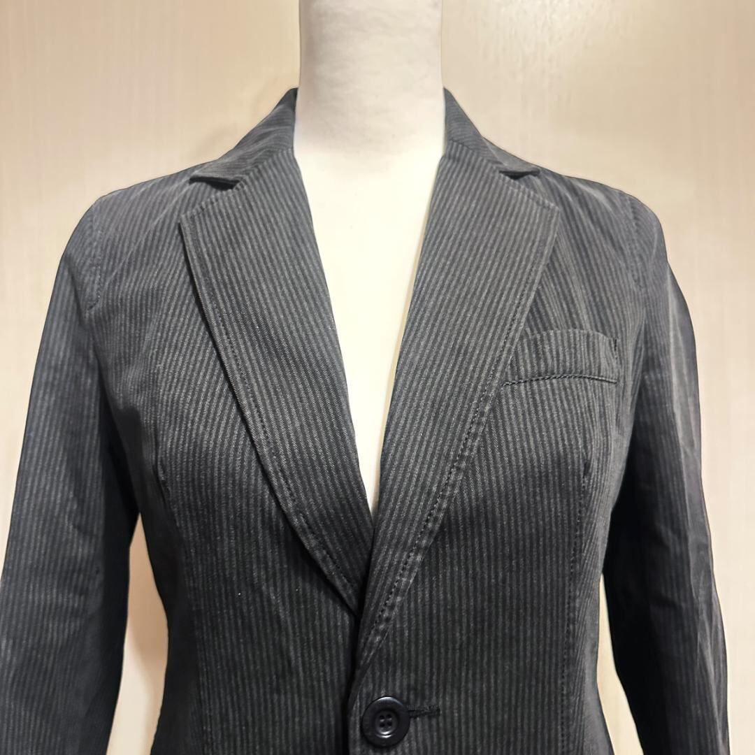 SEE BY CHLOÉ(シーバイクロエ)のボーダージャケットです。黒×グレーの上品な配色で、カジュアルからきれいめまで幅広く活躍。柔らかく程よい厚みの素材感で、春や秋の羽織りに最適。1枚でスタイリングのアクセントになり、女性らしいシルエットを演出します。