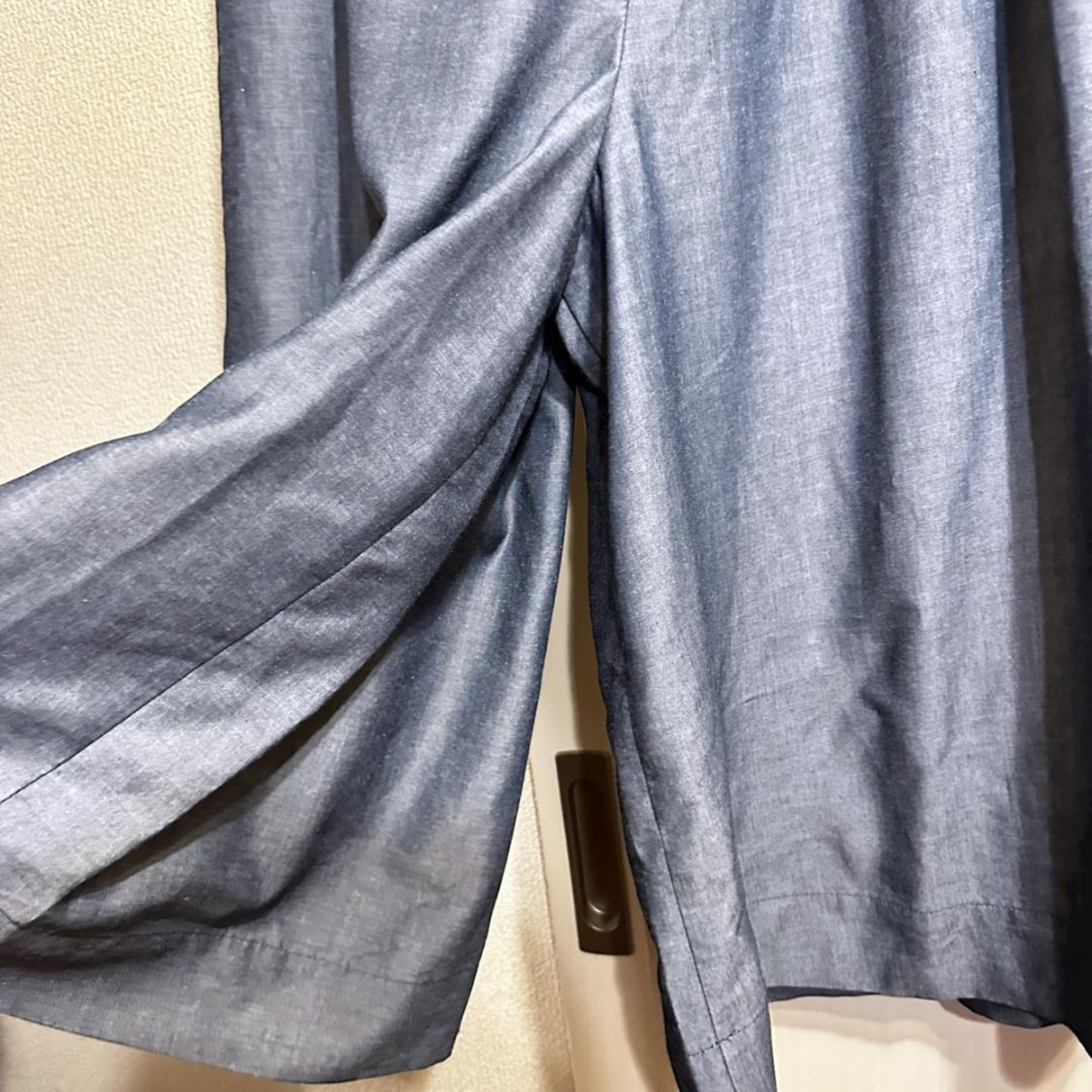 ・ウエストや腿周りにゆとりがあり、ワイドシルエットで動きやすいデザインです。