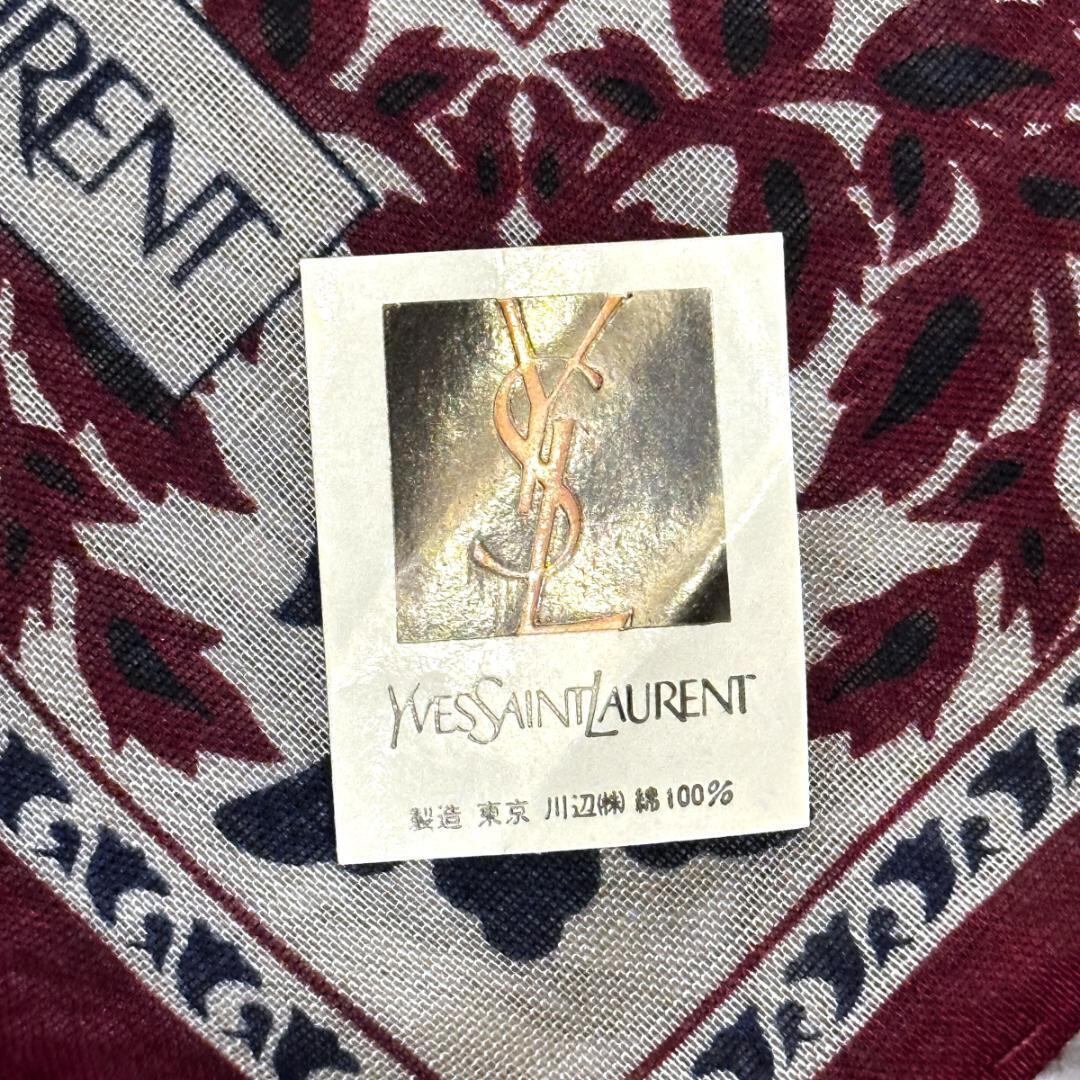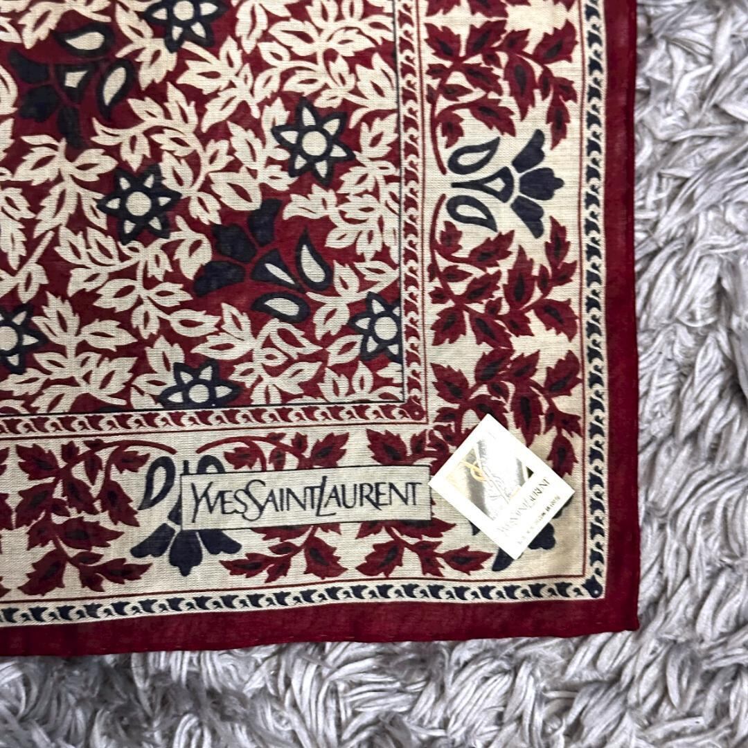 Yves Saint Laurent ハンカチ 草柄 赤系 HR0638