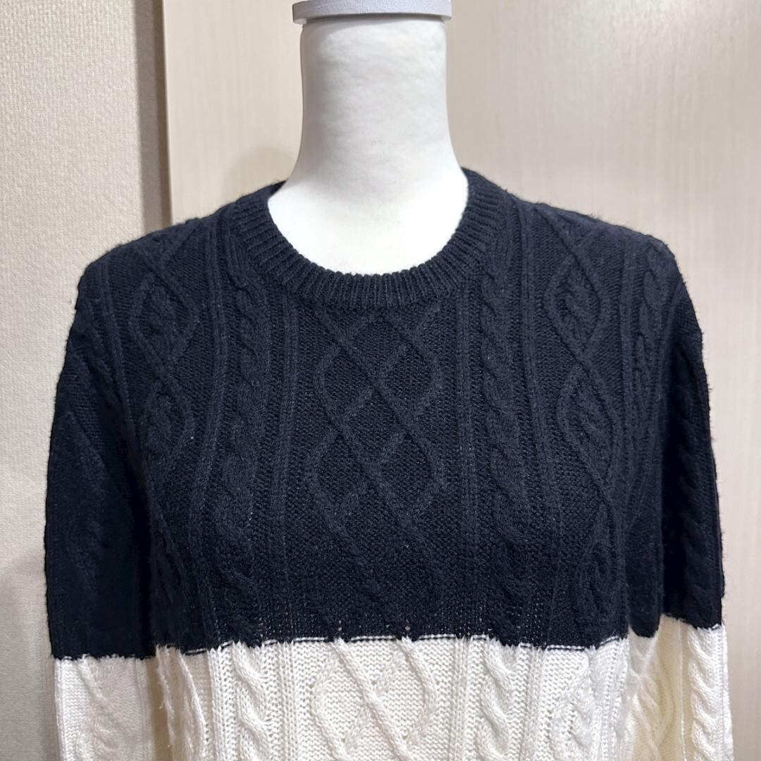 RAGE BLUEのネイビー×ホワイト配色セーターです。シンプルながらもカジュアルなデザインで、デニムやチノパンとの相性も抜群。季節の変わり目や重ね着にもおすすめです。