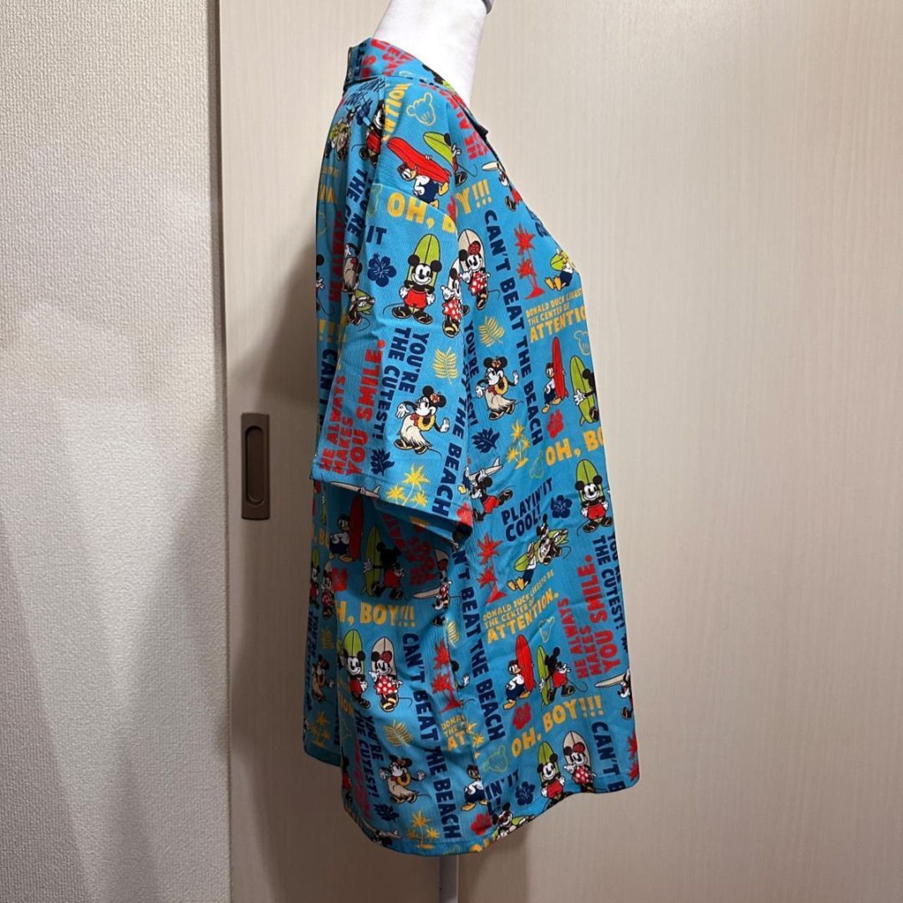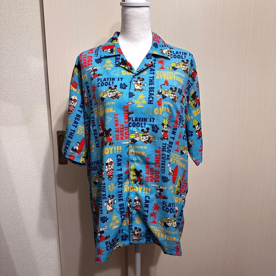BABY DOLL のミッキーデザイン・アロハシャツです。爽やかな水色にポップな総柄が映える1枚。夏らしい軽やかな雰囲気で、1枚でコーデの主役になるアイテムです。ゆったりとしたシルエットで着やすさも◎。
