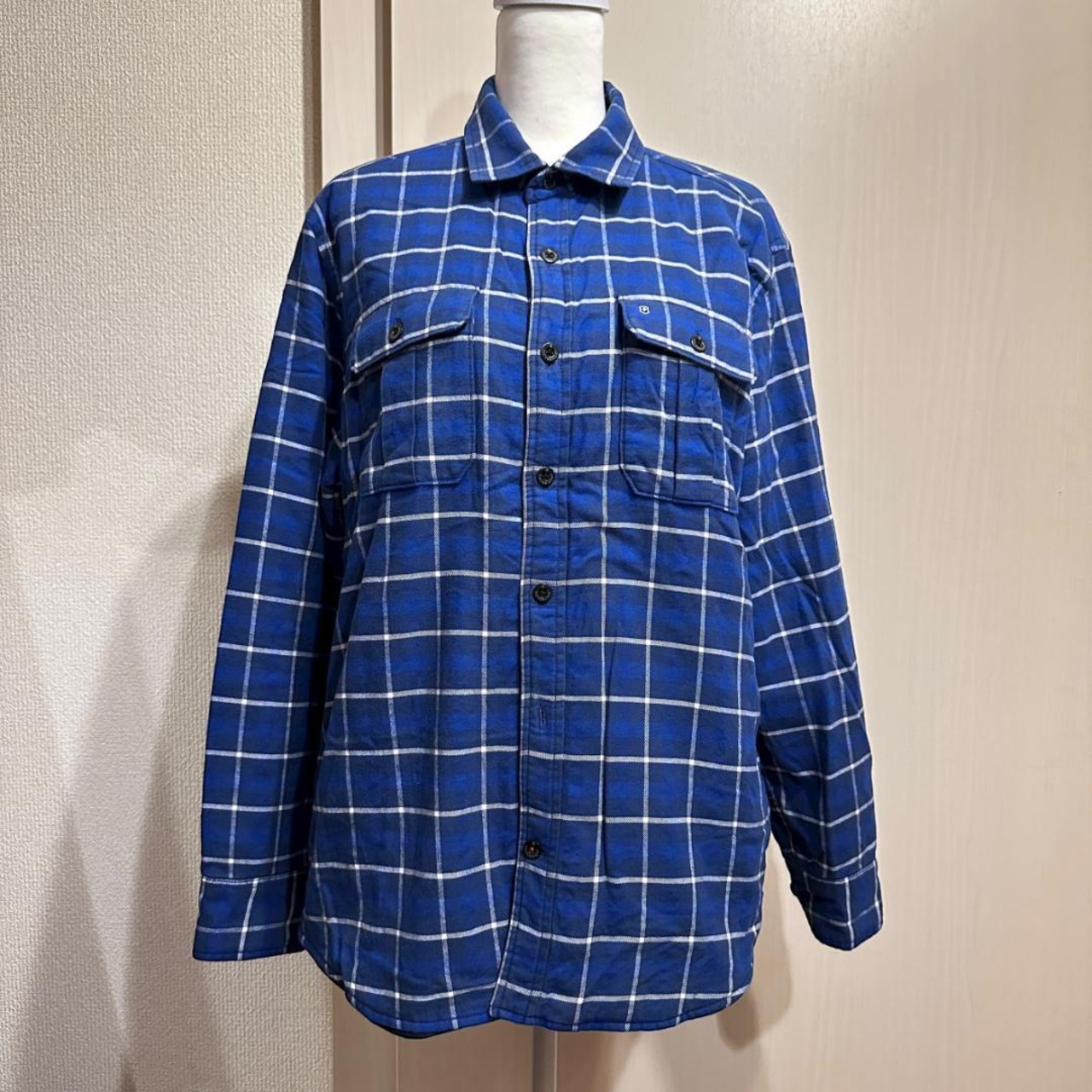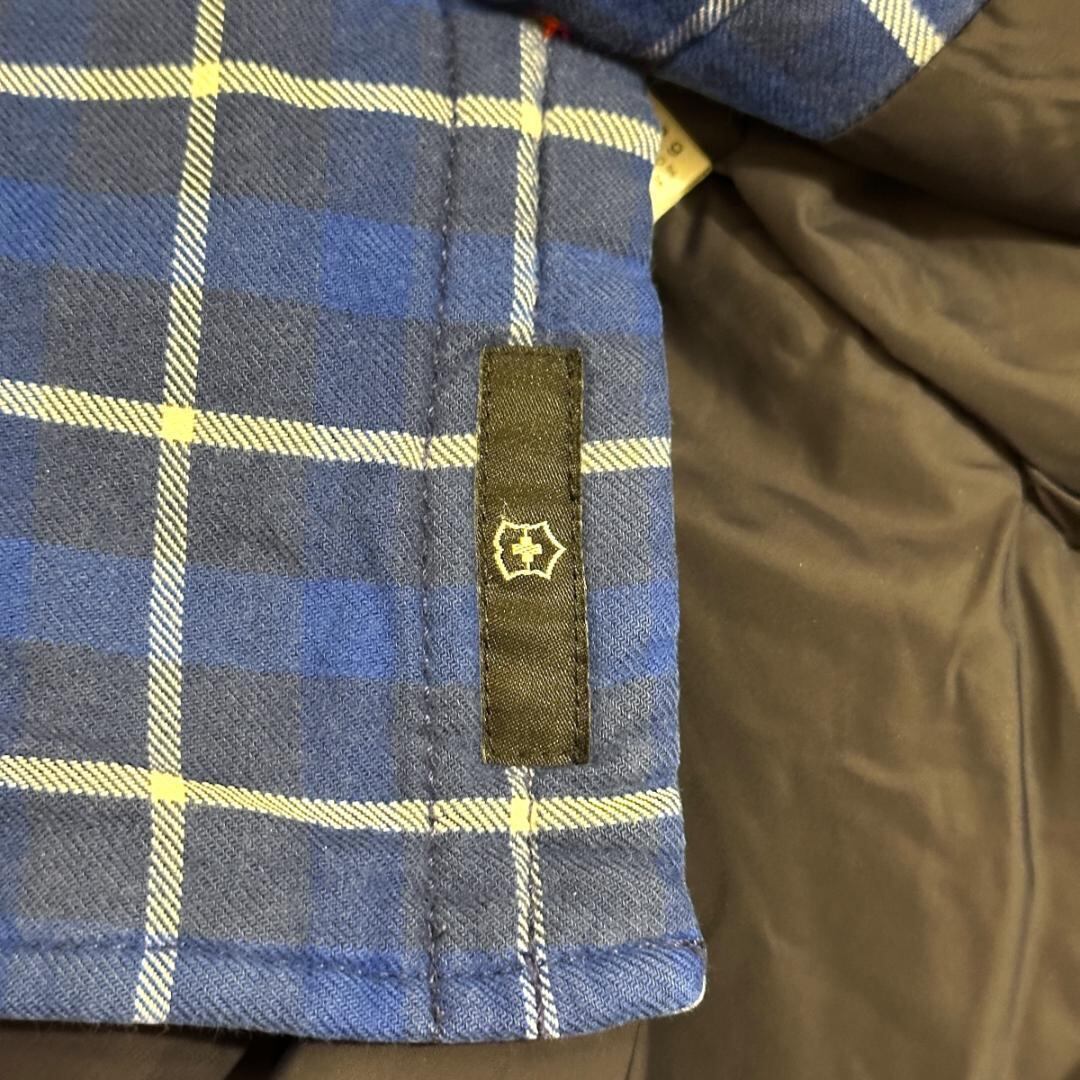 VICTORINOXのダウンシャツ。青系チェック柄で、軽量ながら保温性の高い1着。アウターとしてもインナーとしても使いやすい万能アイテムです。