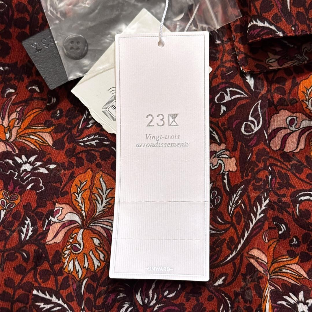23区のタグ付き・新品・未使用の7分丈花柄シャツです。華やかなフラワープリントが上品に映え、女性らしさを引き立ててくれる一着。軽やかな着心地で、キレイめからカジュアルまで幅広いスタイルに合わせやすいアイテムです。