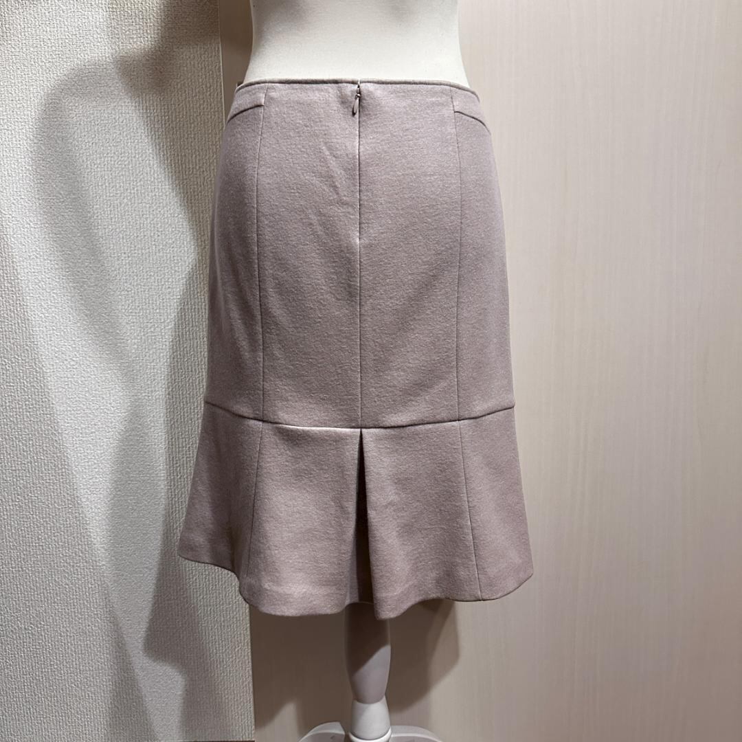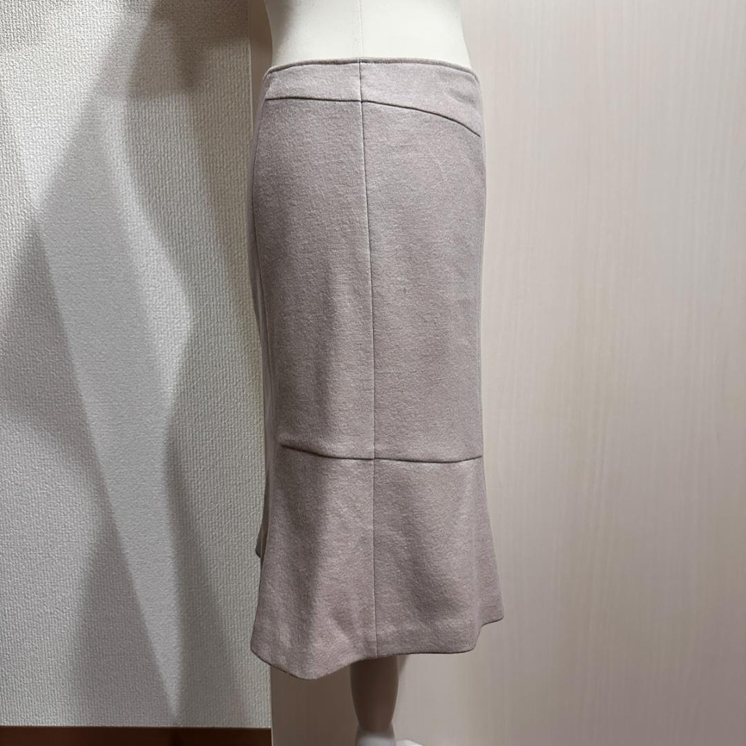 UNTITLED(アンタイトル)のベージュスカート。上品で柔らかい印象のカラーが特徴で、ビジネスシーンからデイリーまで幅広く活躍します。すっきりとしたシルエットで、美しいラインを演出してくれます。