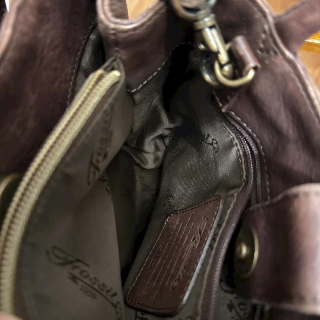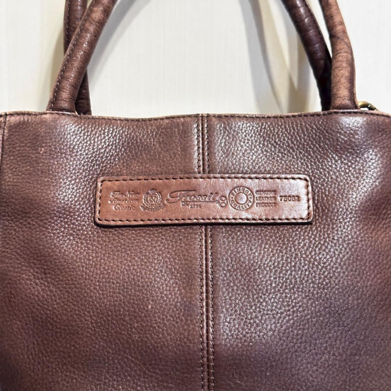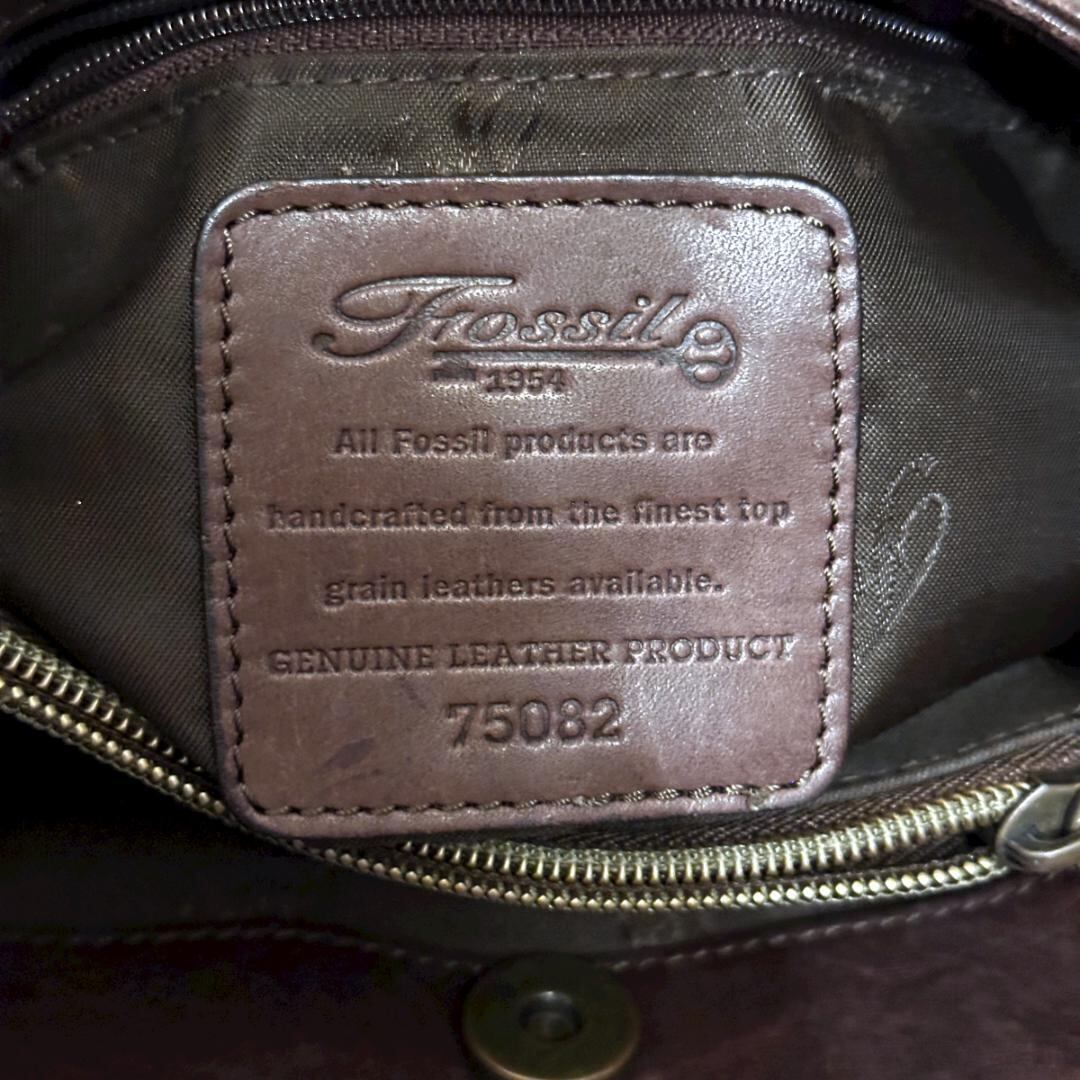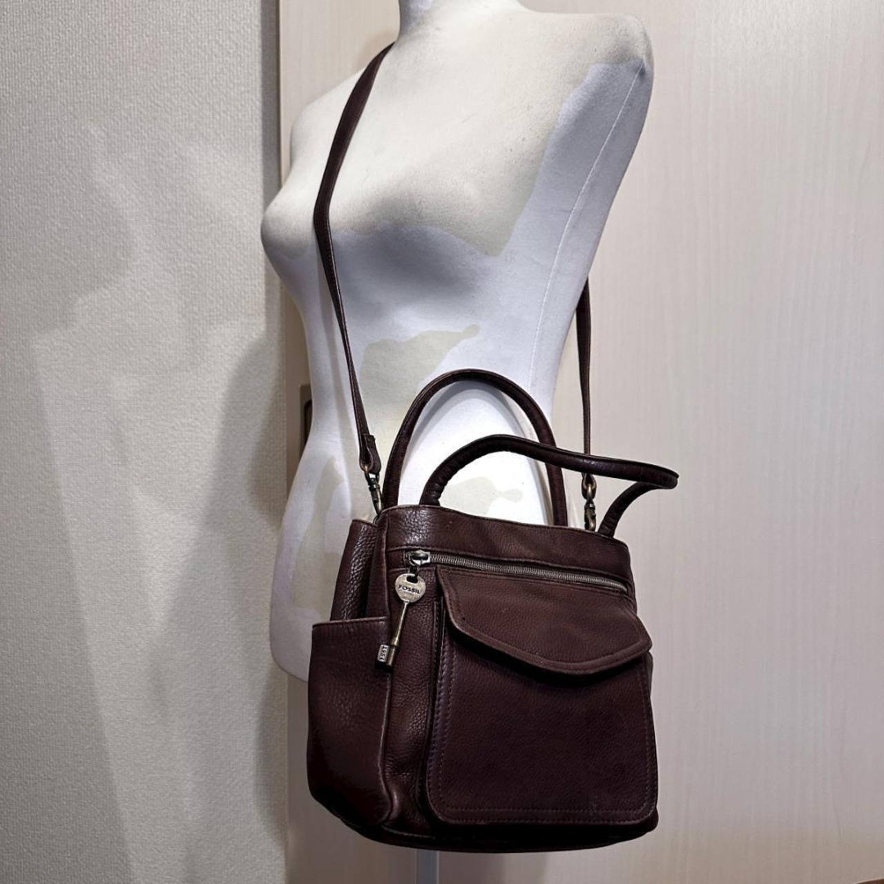 FOSSIL(フォッシル)のブラウンレザーバッグ。
