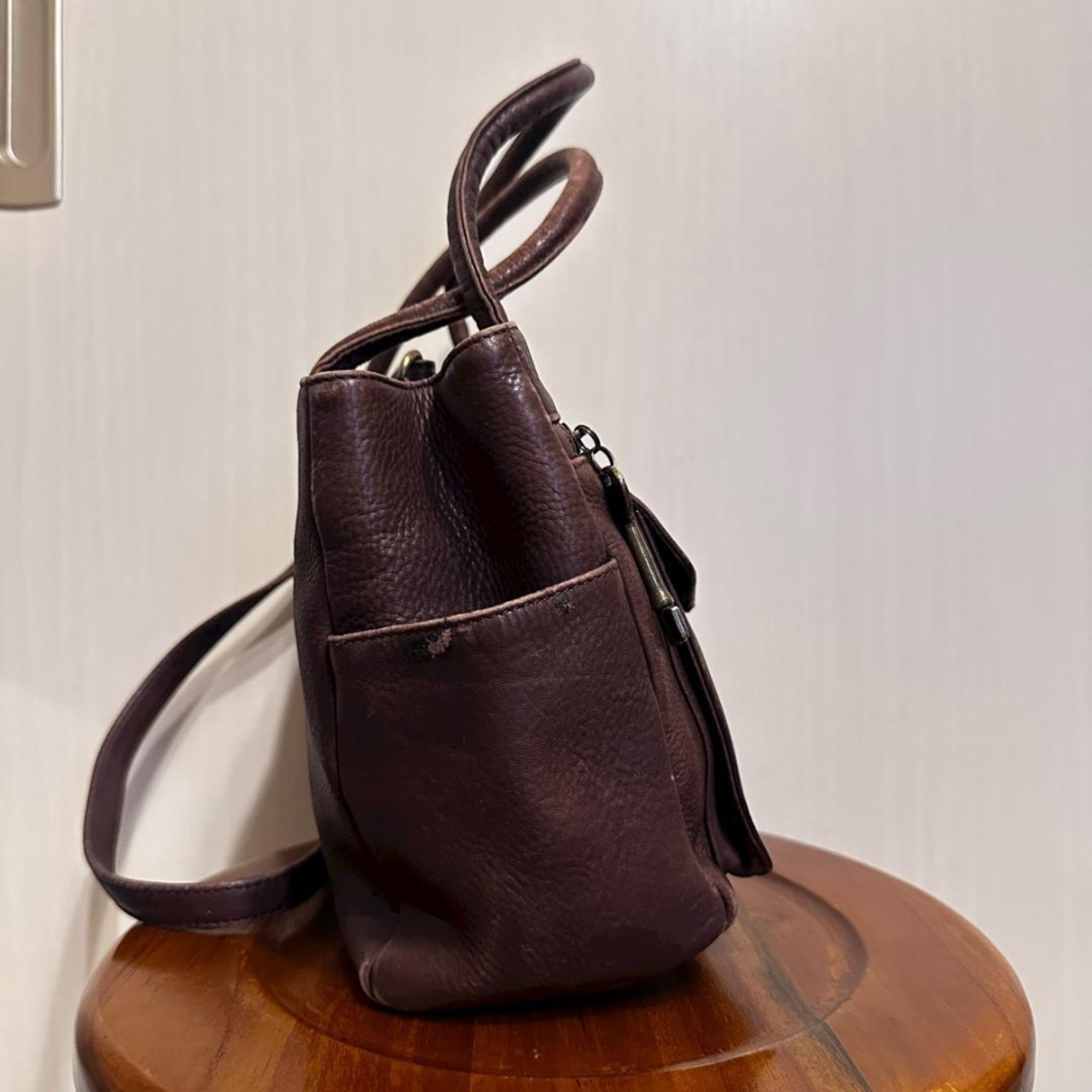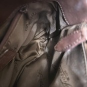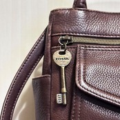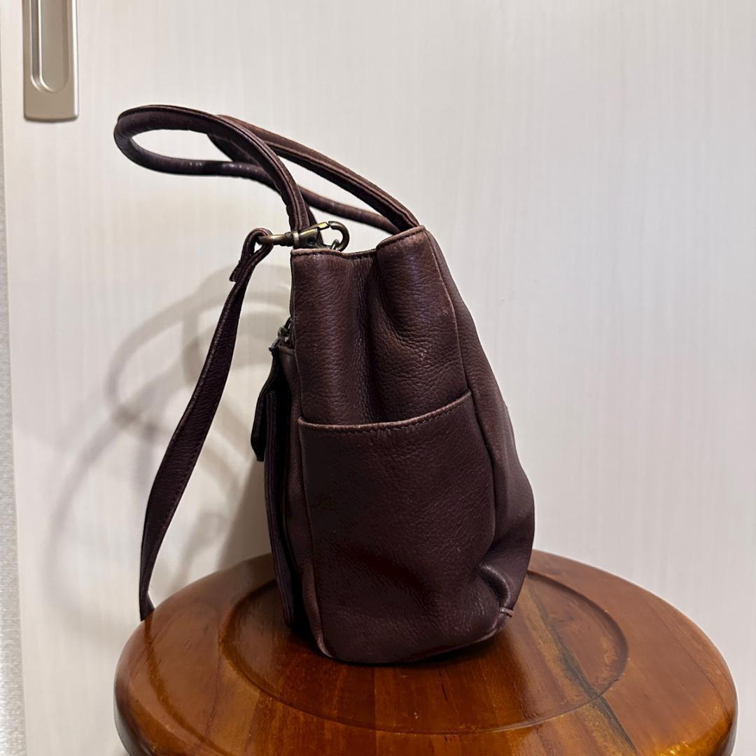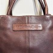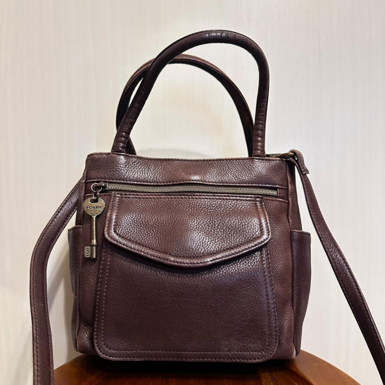 FOSSIL(フォッシル)のブラウンレザーバッグ。