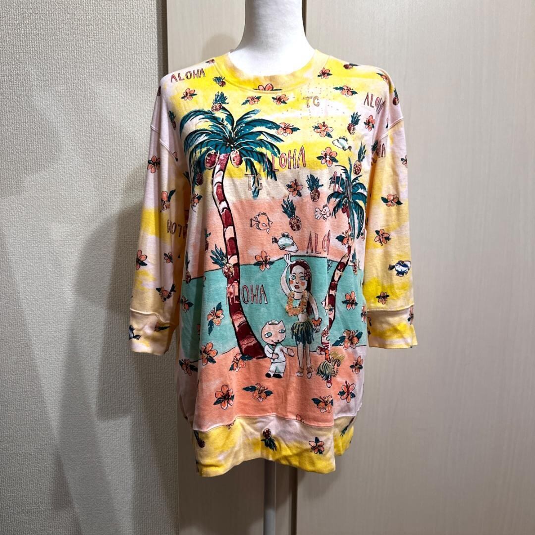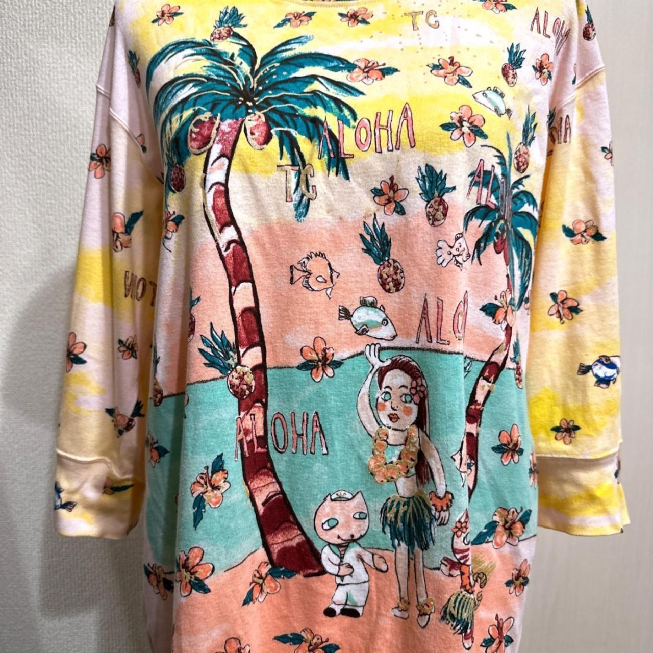 tsumori chisato SLEEP 7分丈シャツ ALOHA柄 ピンク・黄色系 サイズL HR0909