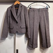 落ち着いたブラウンカラーで、上品かつきちんと感のあるデザインが魅力です。ジャケットとパンツのセットで、通勤やフォーマルシーン、セレモニーなど幅広く活躍します。それぞれ単品使いもしやすいアイテムです。