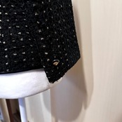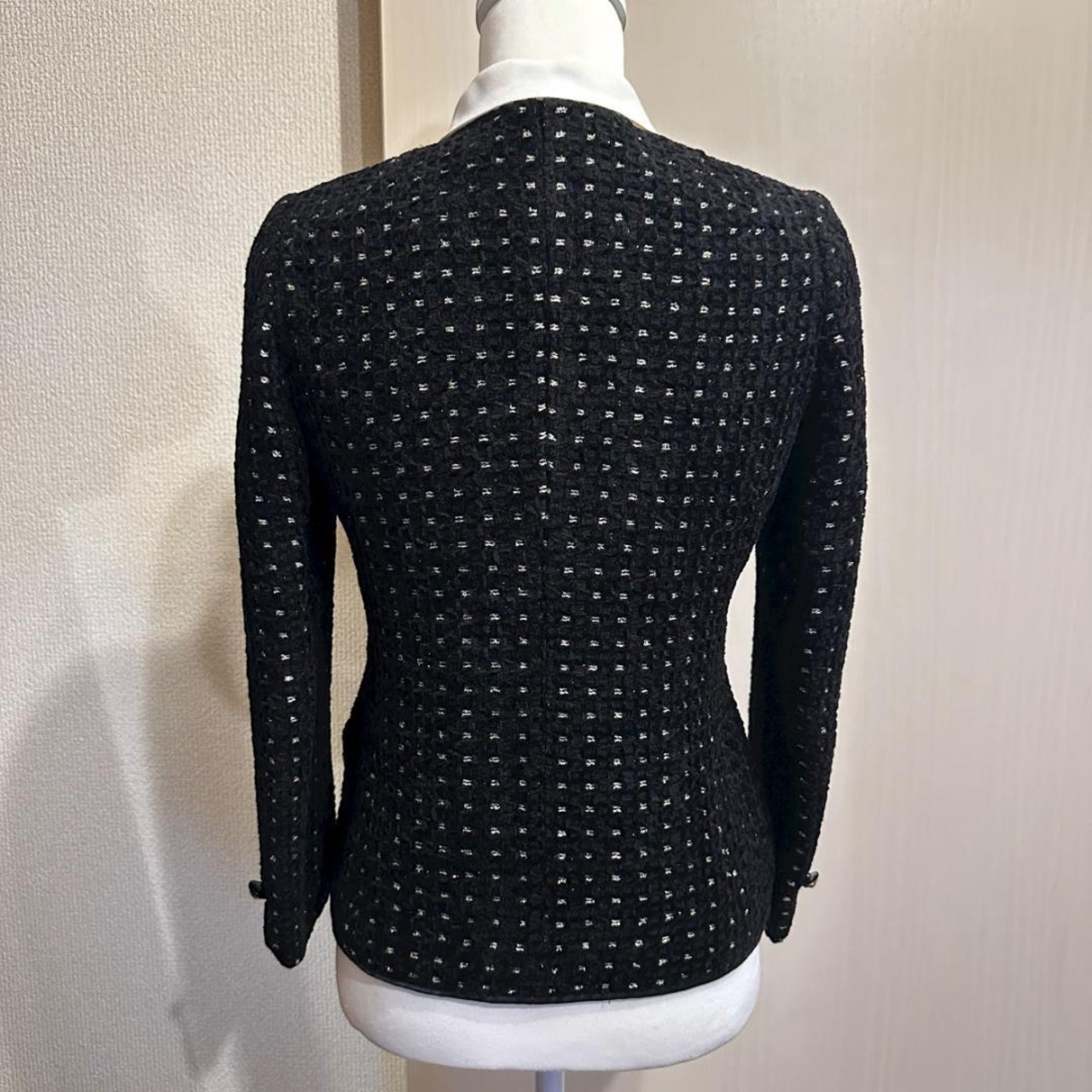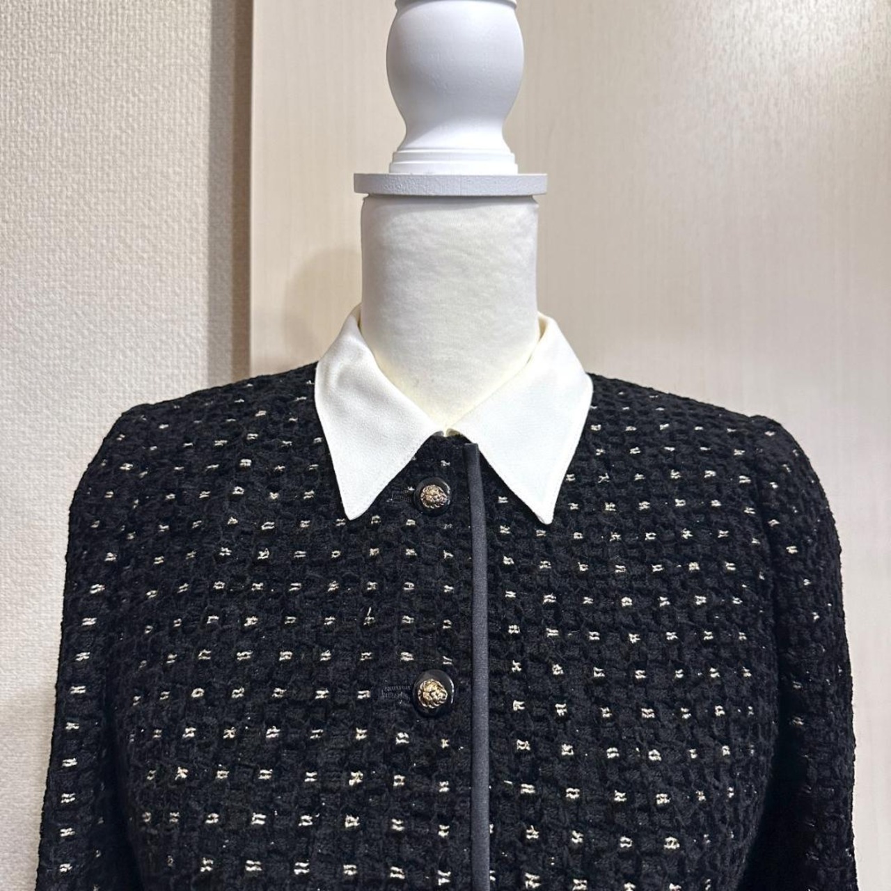 シンプルで上品なブラックカラーが特徴で、フォーマルからきれいめカジュアルまで幅広く活躍する一着です。コンパクトなシルエットで、ワンピースやスカート、パンツスタイルにも合わせやすいデザインです。