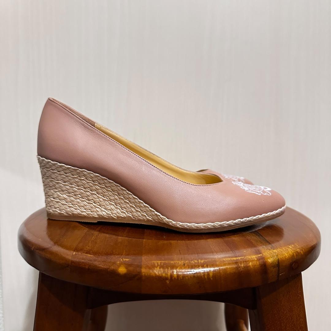 a.testoni(ア・テストーニ)のエレガントなピンクパンプス。上品な色味と洗練されたシルエットで、フォーマルから綺麗めカジュアルまで幅広く活躍します。ヒールは約6cmで、スタイルアップしつつも歩きやすい高さです。