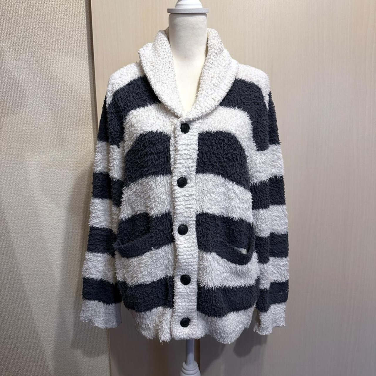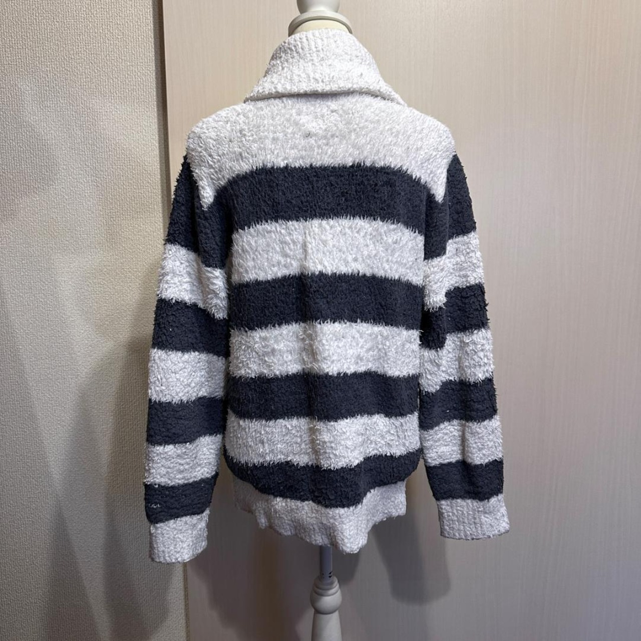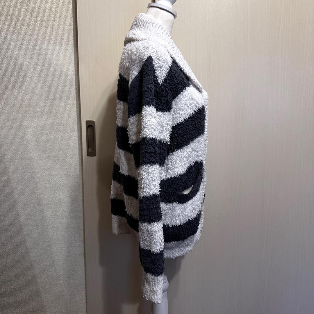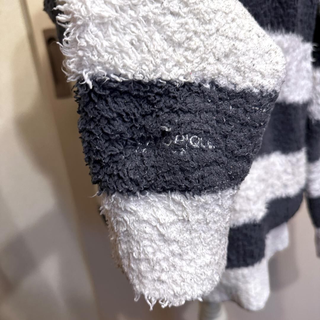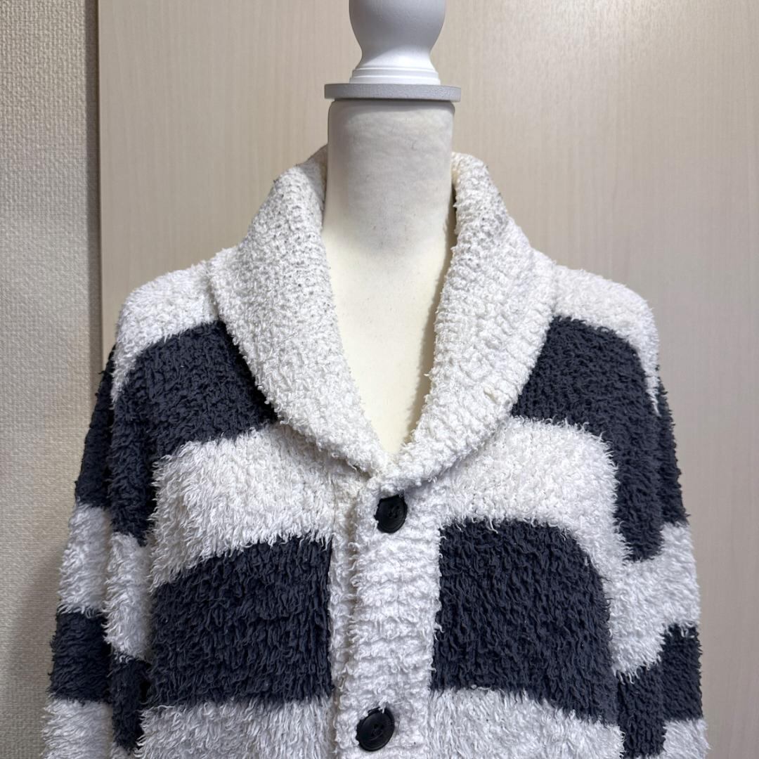 GELATO PIQUEのボーダー柄カウチンカーディガンです。ブランドらしい柔らかな雰囲気と、存在感のあるボーダーデザインが特徴。程よい厚みがあり、羽織りとして秋冬シーズンに活躍する一着です。リラックス感がありつつ、コーディネートのアクセントにもなります。