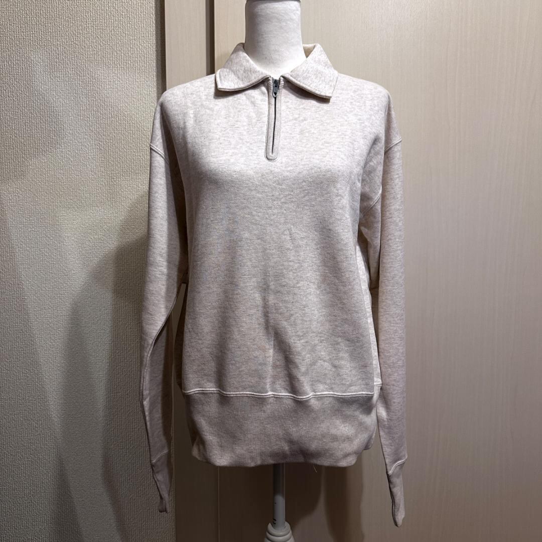 Championの半ジップタイプのスウェットです。ライトグレーのベーシックなカラーで、カジュアルからスポーティーまで幅広いスタイルに合わせやすい一着。程よくゆとりのあるシルエットで、季節の変わり目やレイヤードスタイルにも活躍します。