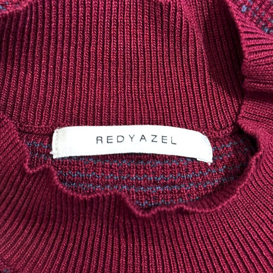 REDYAZELのリブニットワンピースです。深みのあるボルドーカラーがシックで女性らしい印象を与えます。体にフィットするリブ素材で、シルエットを美しく見せるデザイン。1枚での着用はもちろん、レイヤードスタイルにもおすすめです。