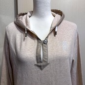 Munsingwearのヘンリーネックデザインが特徴的なパーカーです。ベージュカラーの落ち着いた色合いで、カジュアルながらも上品な印象。首元のボタンデザインがアクセントになり、デイリーコーデに取り入れやすい一着です。