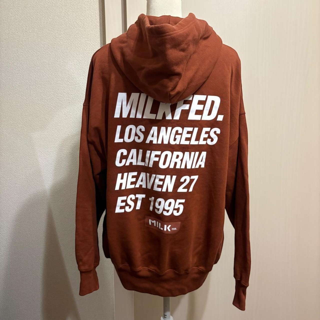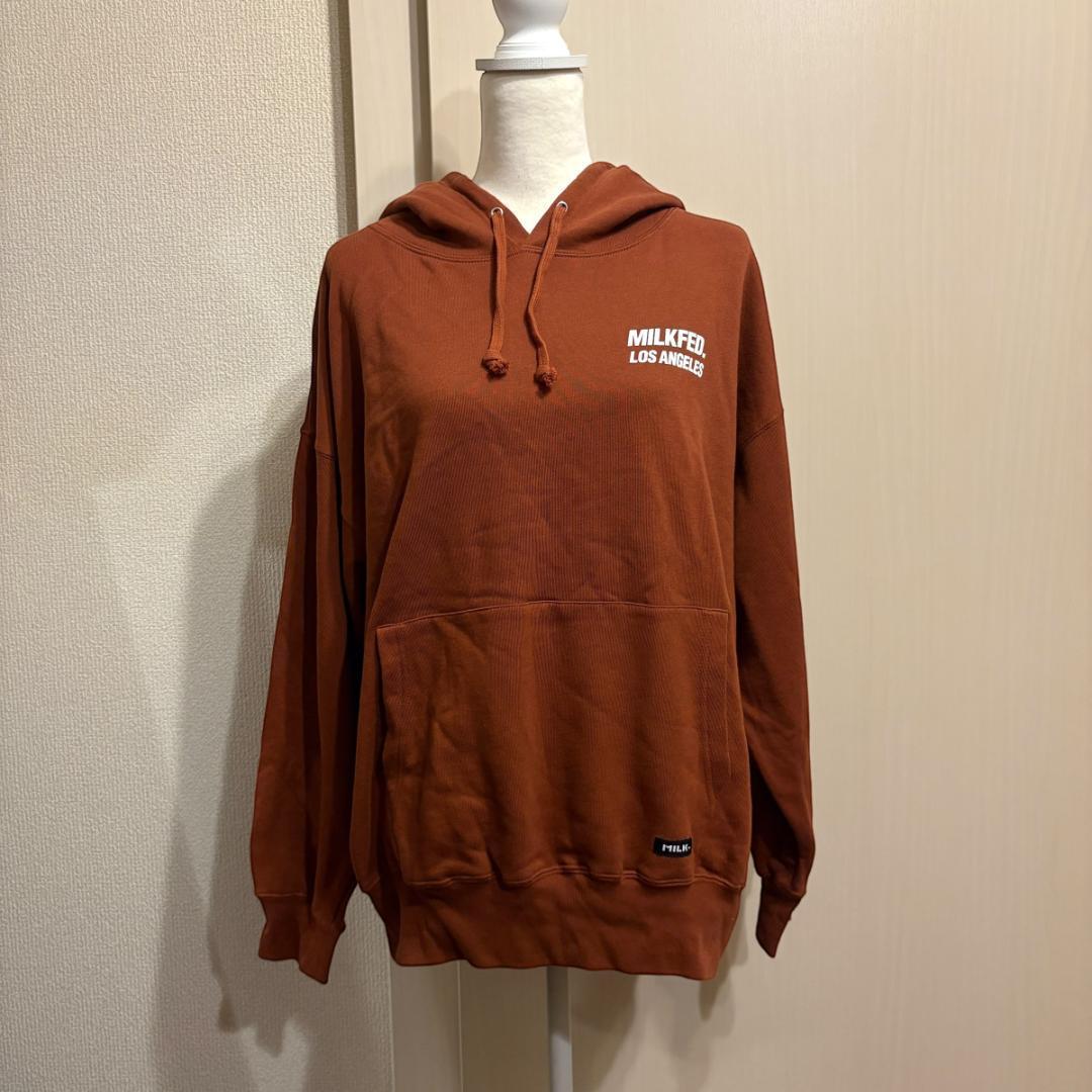 MILKFED(ミルクフェド)のスウェットパーカーです。シンプルでストリート感のあるデザインが特徴で、デイリーに使いやすい一着。程よい厚みのスウェット素材で、リラックスした着心地を楽しめます。パンツにもスカートにも合わせやすく、カジュアルスタイルの定番として活躍します。