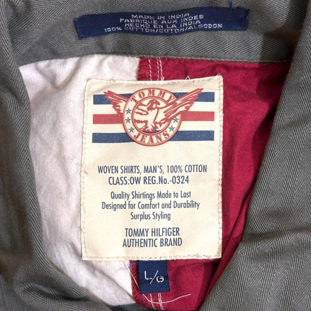 TOMMY HILFIGER アメリカ国旗柄シャツ オリーブ サイズL HR1259