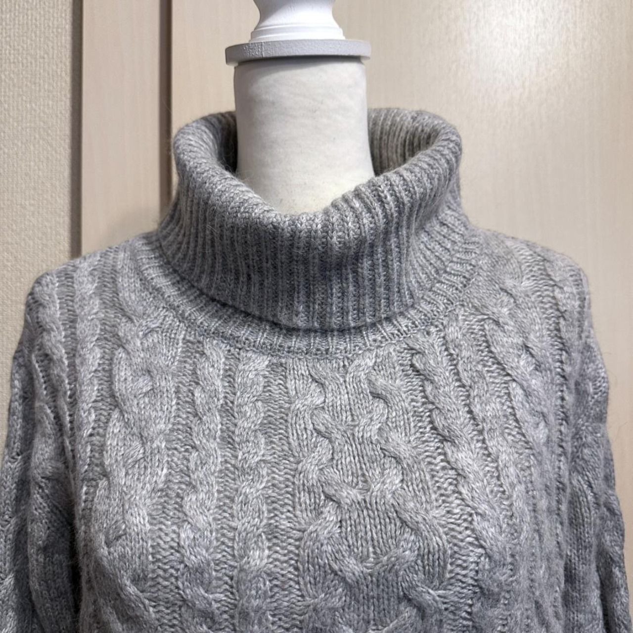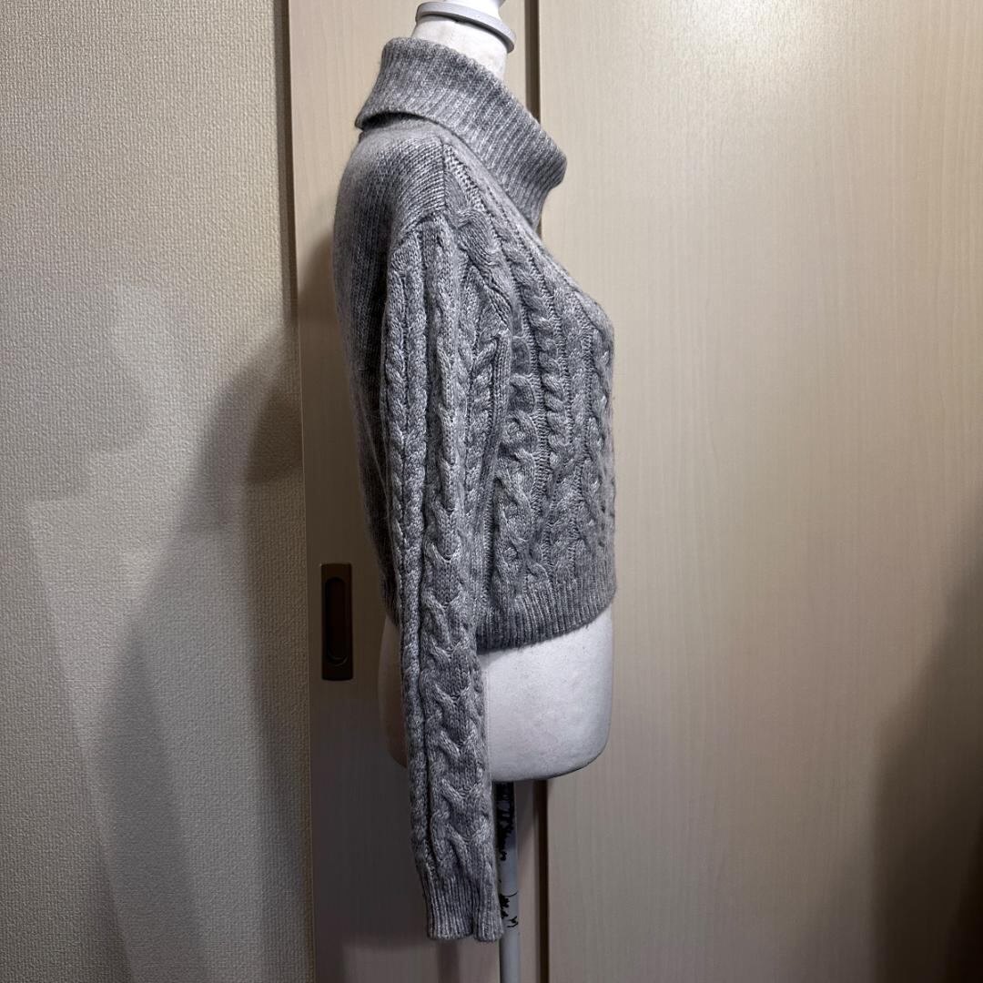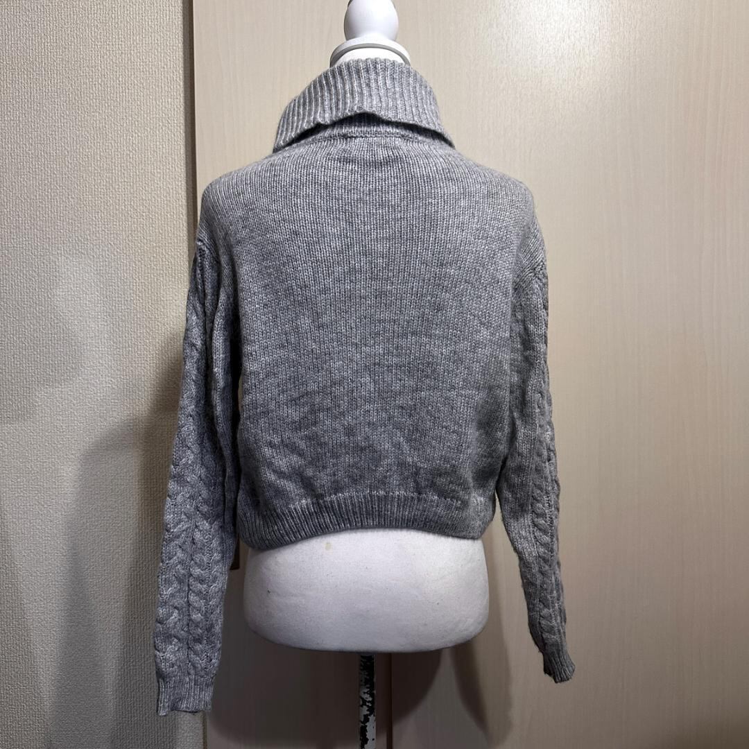 グレーカラーのハイネックショートセーター。
