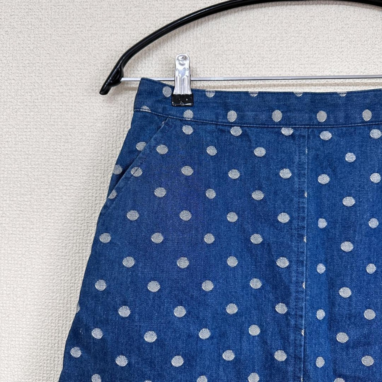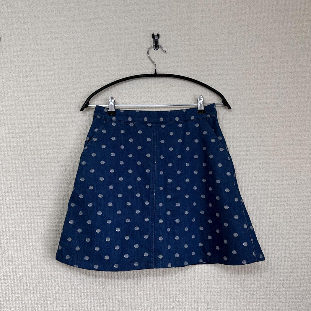 水玉柄が目を引くデニムスカート。