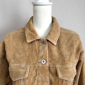 KBF(ケービーエフ)のコーデュロイジャケットです。季節感のあるコーデュロイ素材で、羽織るだけで秋冬らしい雰囲気を演出できる一着。程よくカジュアルなデザインで、デニムやスカートなど幅広いボトムスと合わせやすく、デイリー使いに活躍します。一般的な中古衣類として、着用に支障のない状態とお考えください。