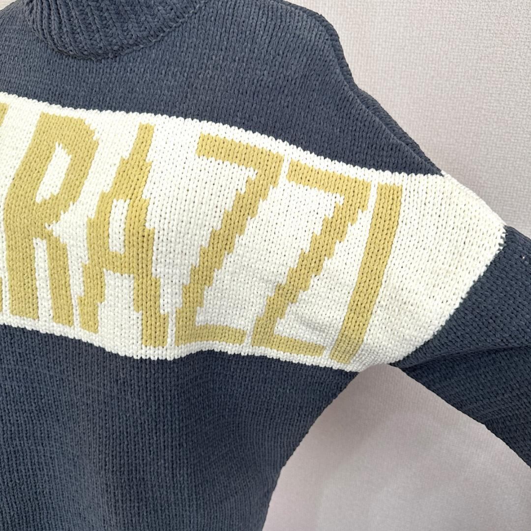 GYDA(ジェイダ)のPAPARAZZIデザイン ポリエステルニットです。存在感のあるロゴデザインが目を引き、ストリート感のあるスタイリングに取り入れやすい一着。ポリエステル素材のため比較的軽く、レイヤードもしやすいアイテムです。デニムやスカートと合わせて、カジュアルに着こなせます。一般的な中古衣類として、着用に支障のない状態とお考えください。