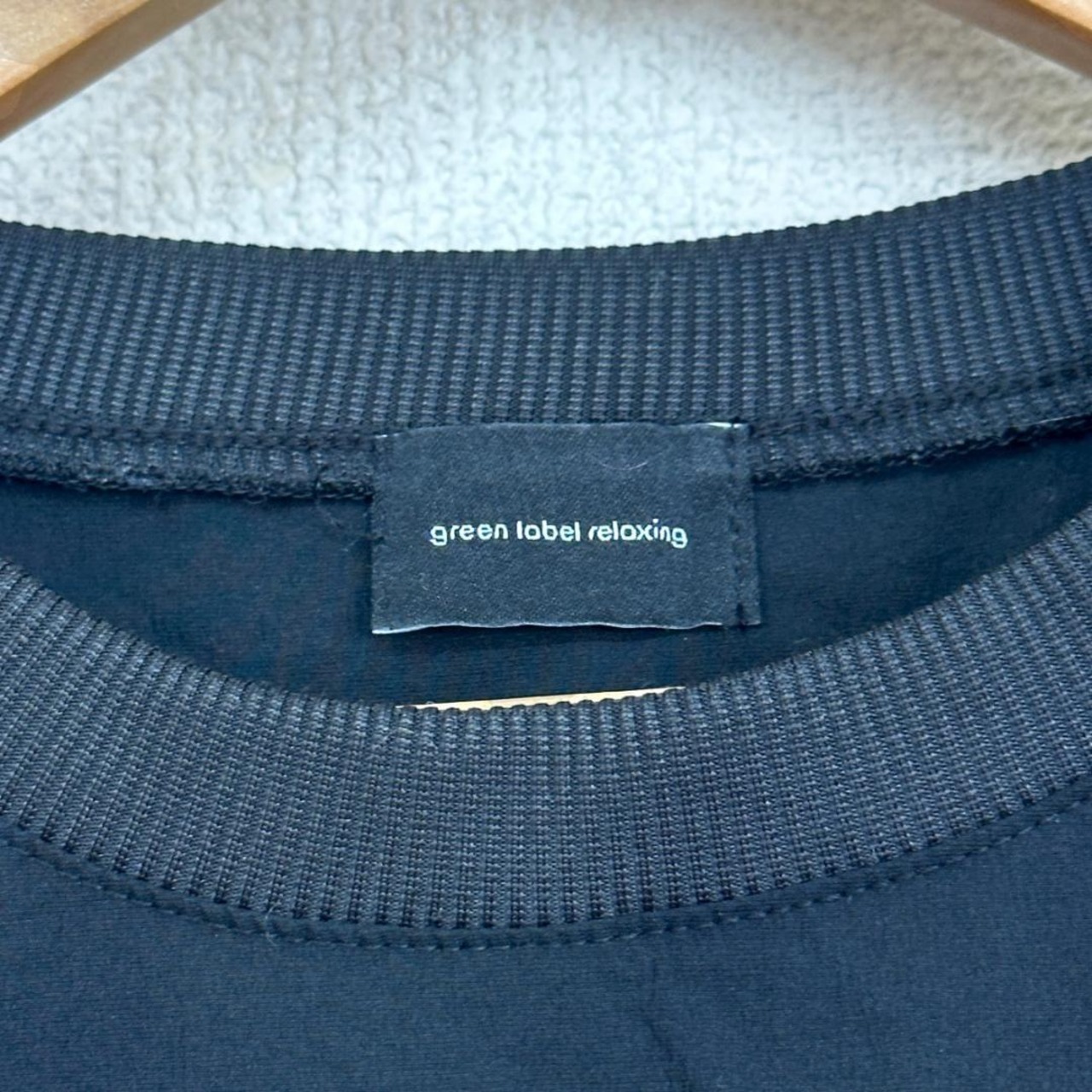 green label relaxing(グリーンレーベル リラクシング)のTシャツです。ベーシックなブラックカラーで、シンプルかつ洗練された印象の一着。程よく厚みのある生地感で、1枚着としてはもちろん、ジャケットやシャツのインナーとしても使いやすいデザインです。カジュアルからきれいめスタイルまで幅広く対応します。