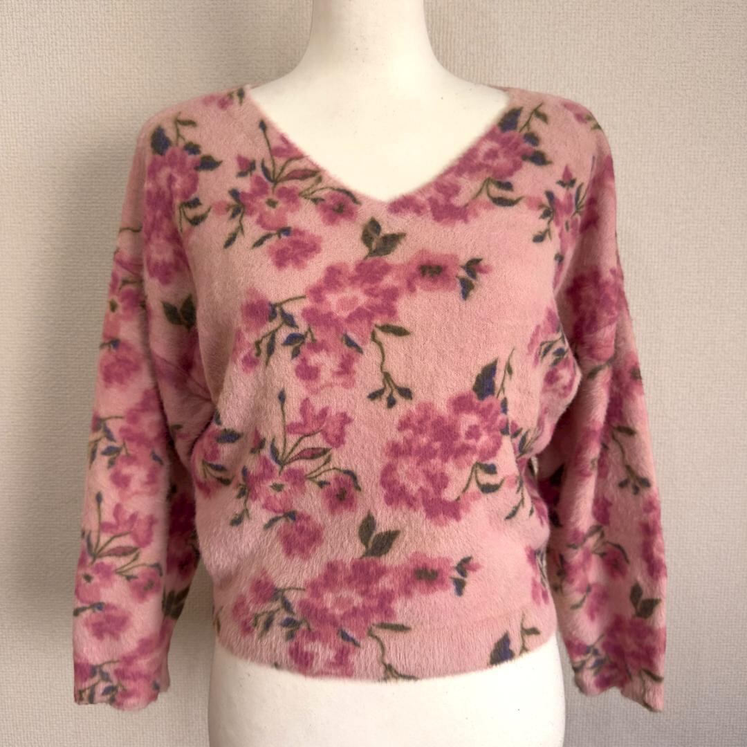 PEACH JOHN Vネックセーター 花柄 ピンク サイズM HR1558