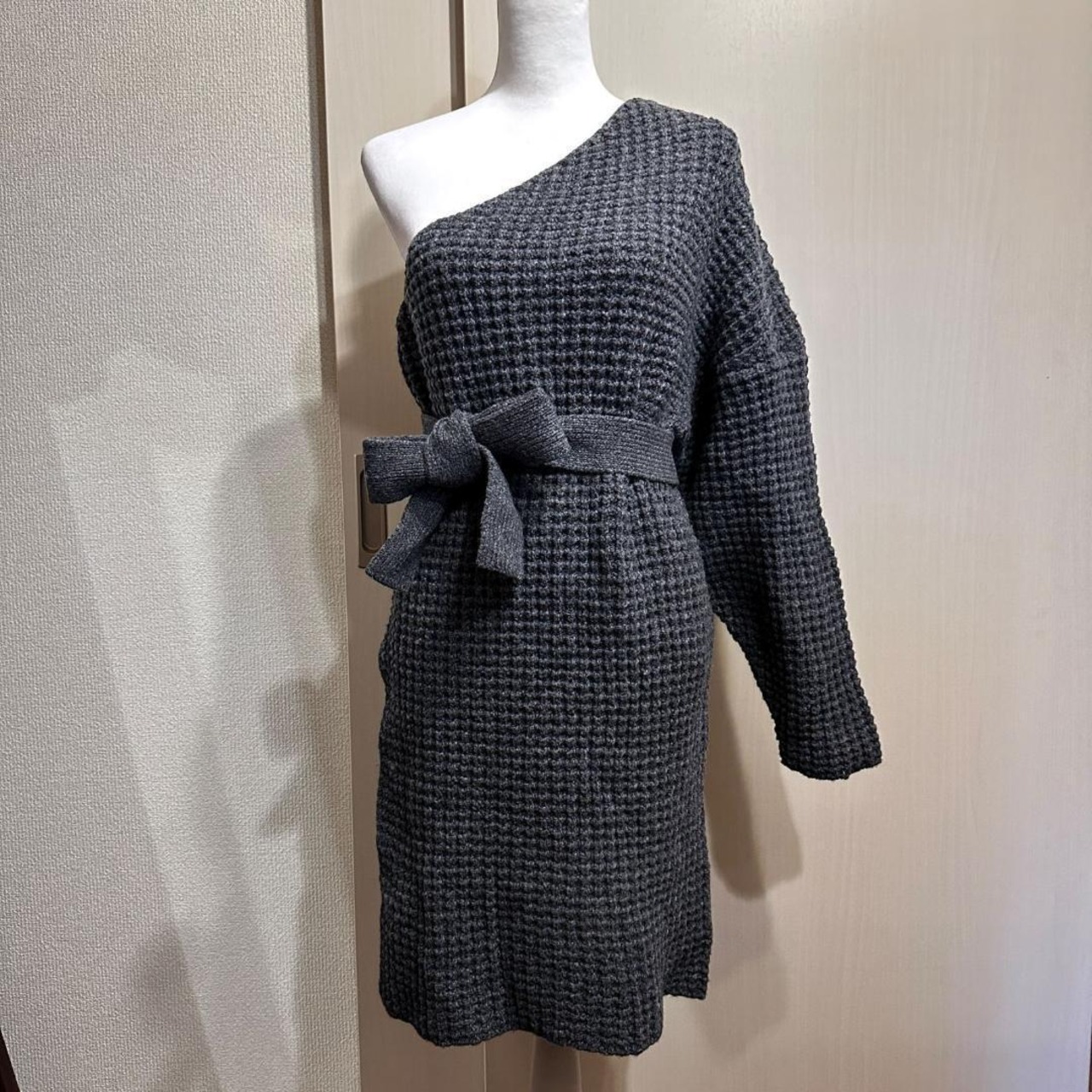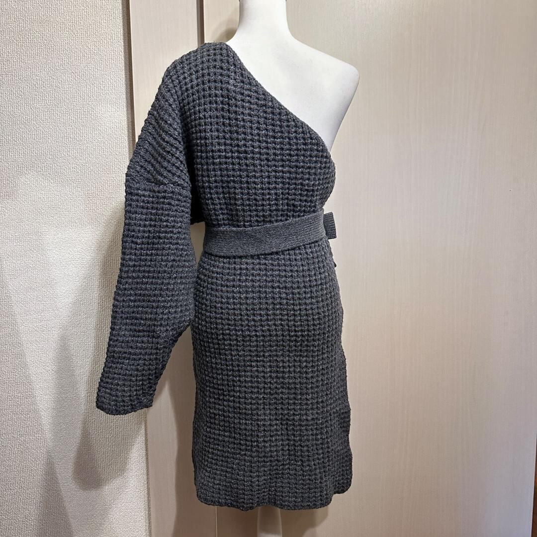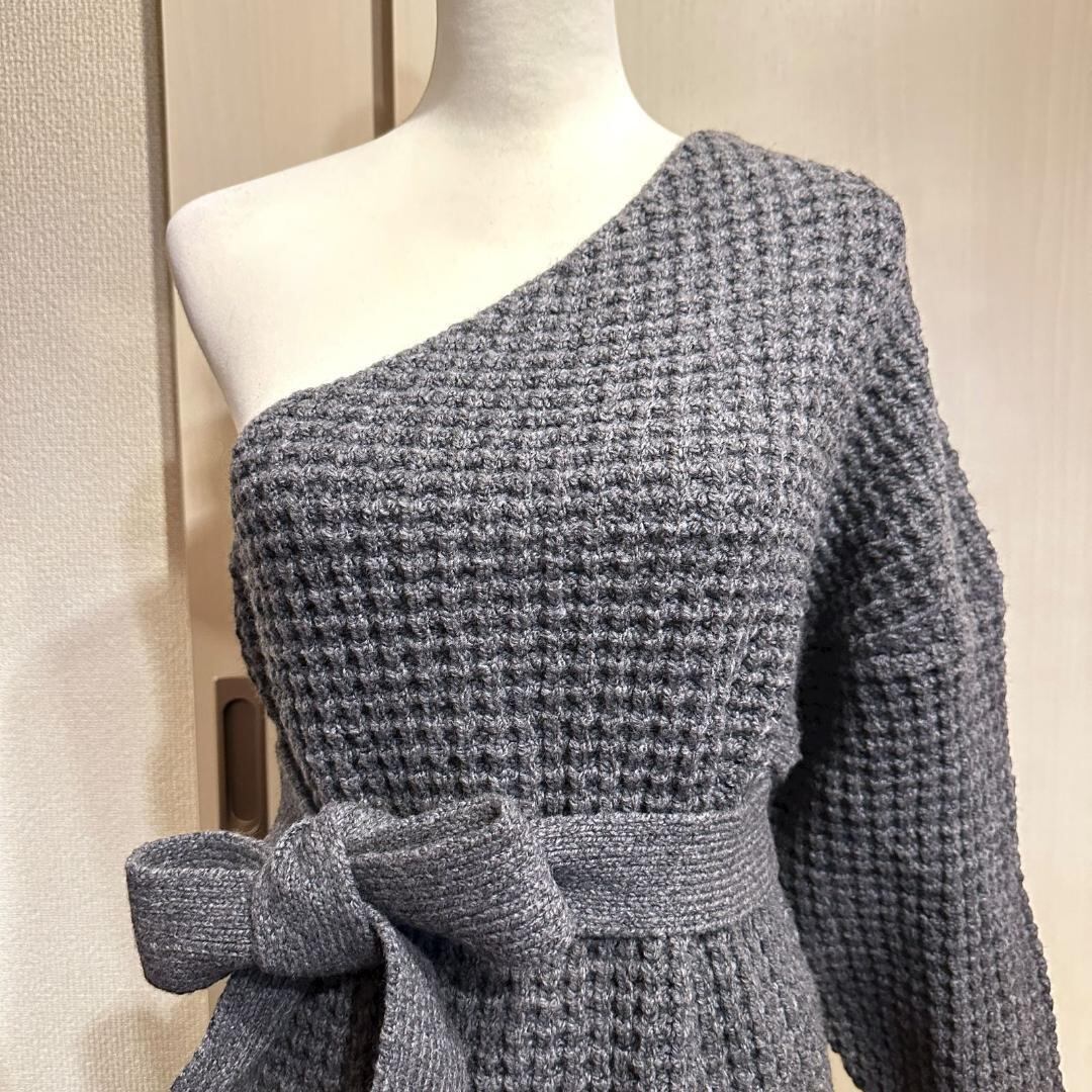 BLACK BY MOUSSY ワンショルセーターワンピース 紐付き グレー サイズフリー HR0714