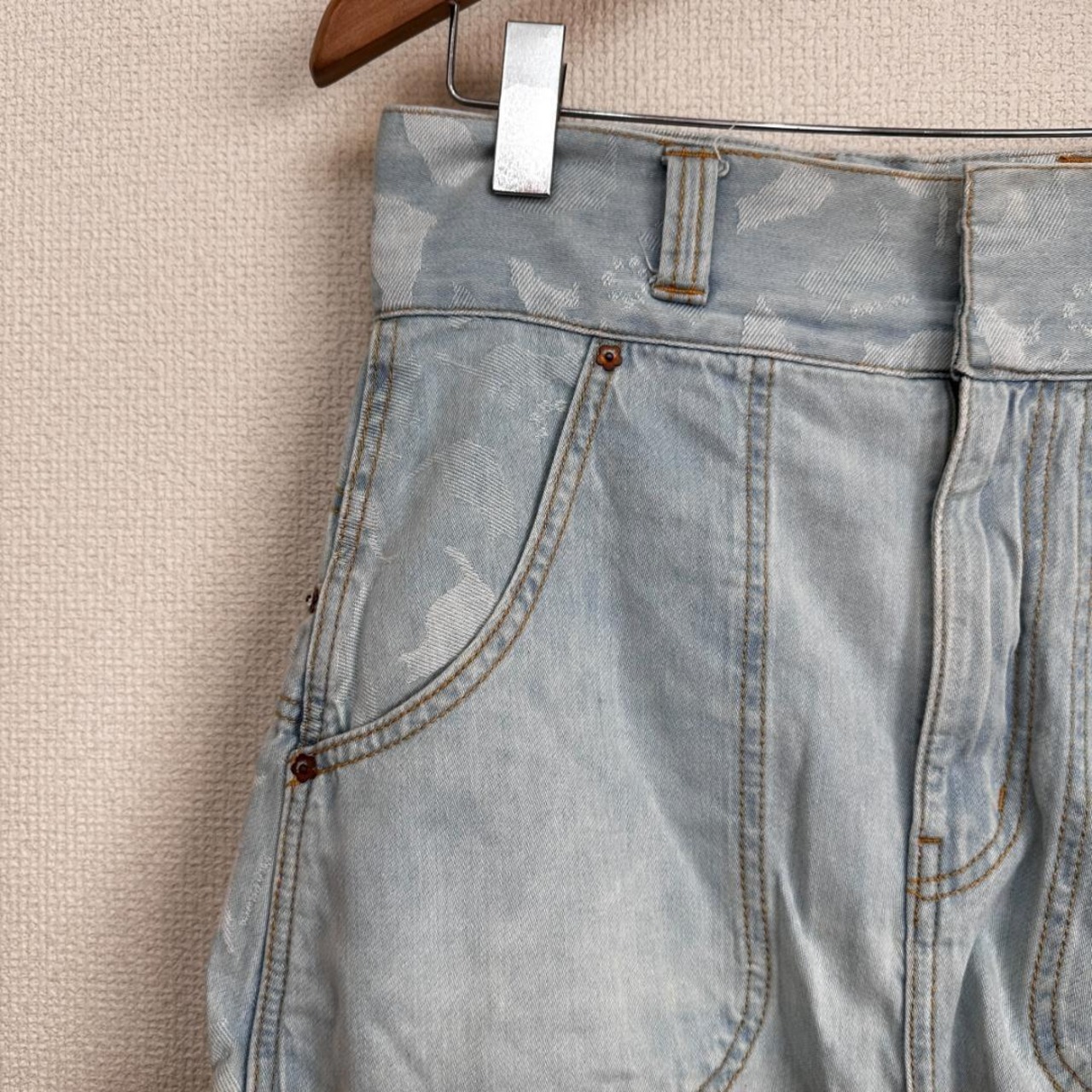 FRAPBOIS(フラボア)のデニムショートパンツです。ベーシックなデニム素材を使用しつつ、ブランドらしいリラックス感のあるシルエットが特徴の一本。カジュアルな印象ながらも、程よいデザイン性があり、Tシャツやシャツなど幅広いトップスと合わせやすいアイテムです。春夏シーズンを中心にデイリーに活躍します。