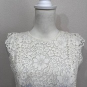 JILL STUART(ジルスチュアート)のレースノースリーブカットソーです。繊細なレース素材が上品で、女性らしい印象の一着。ホワイトカラーで清潔感があり、ジャケットやカーディガンのインナーとしても使いやすいデザインです。きれいめスタイルからカジュアルコーデまで幅広く活躍します。一般的な中古衣類として、わずかな使用感が見られる場合があります。