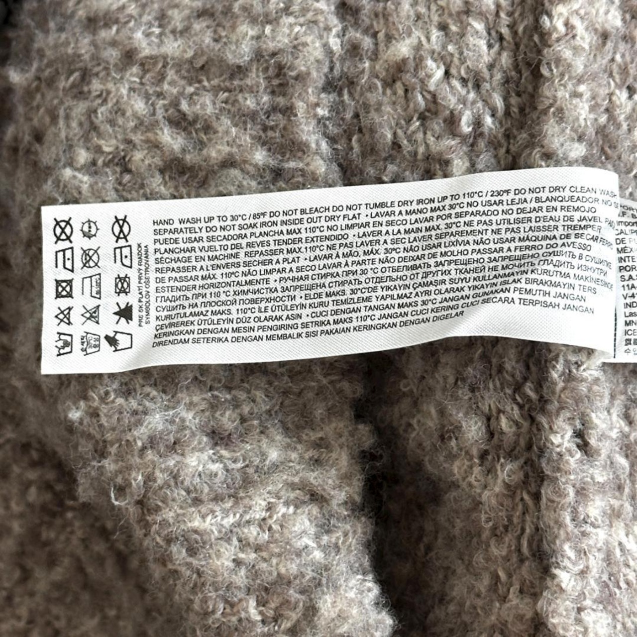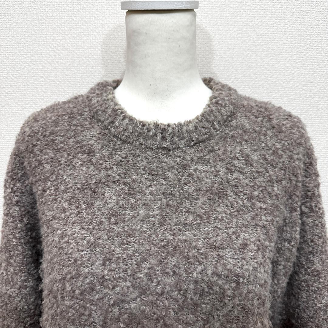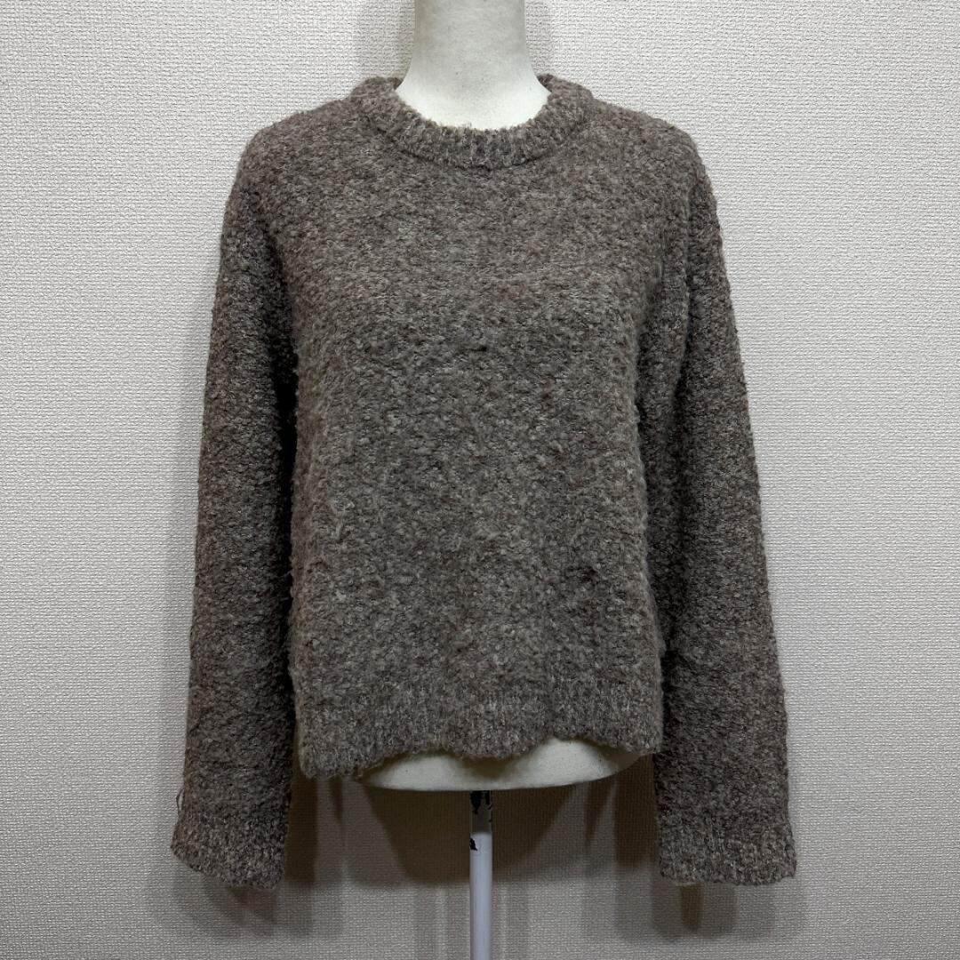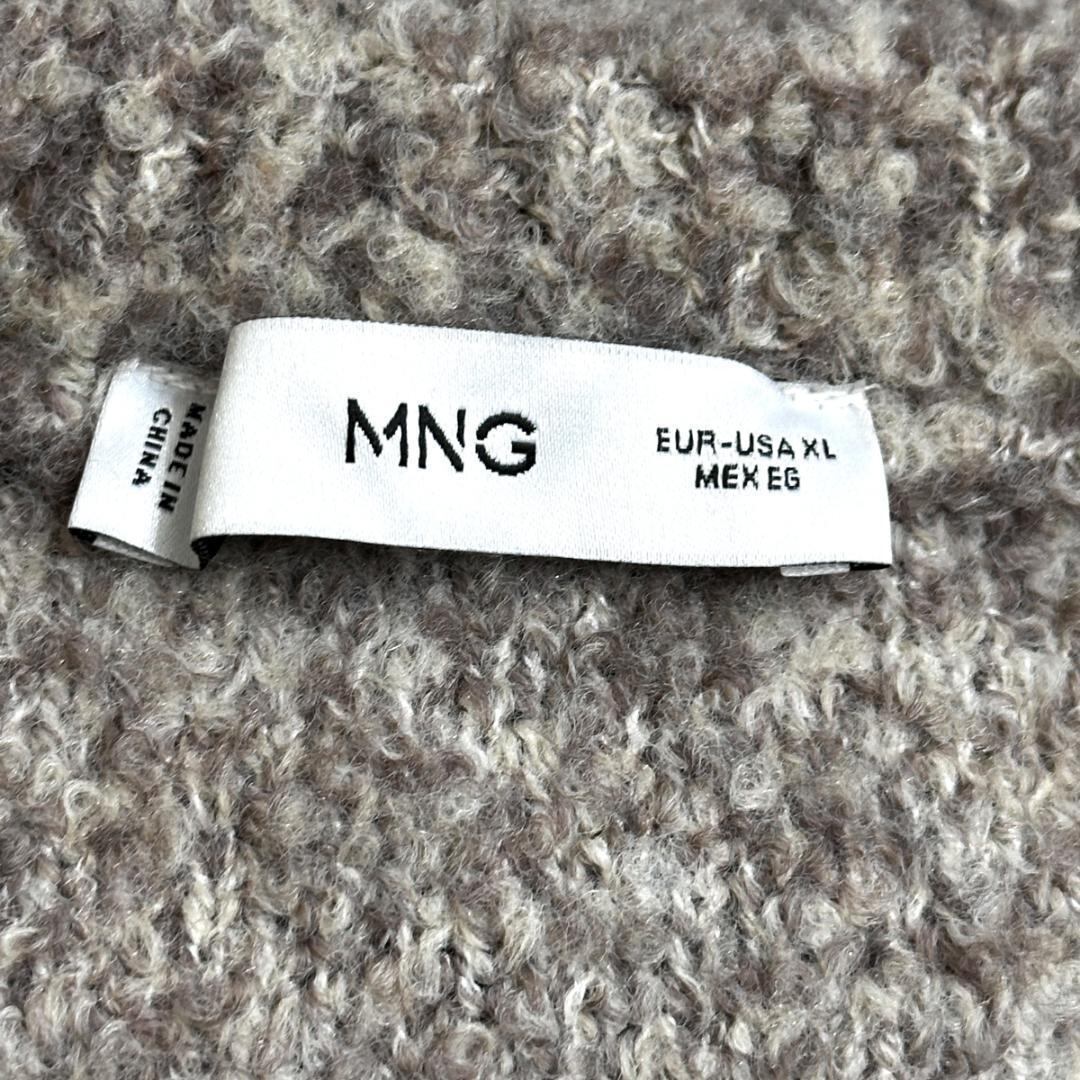 MNG(マンゴー)のニットセーターです。落ち着いたブラウンカラーで、秋冬らしい温かみのある印象の一着。シンプルなデザインのため、デニムやスラックス、スカートなど幅広いボトムスと合わせやすく、デイリー使いに活躍します。一般的な中古衣類として、着用に伴うわずかな使用感が見られる場合があります。