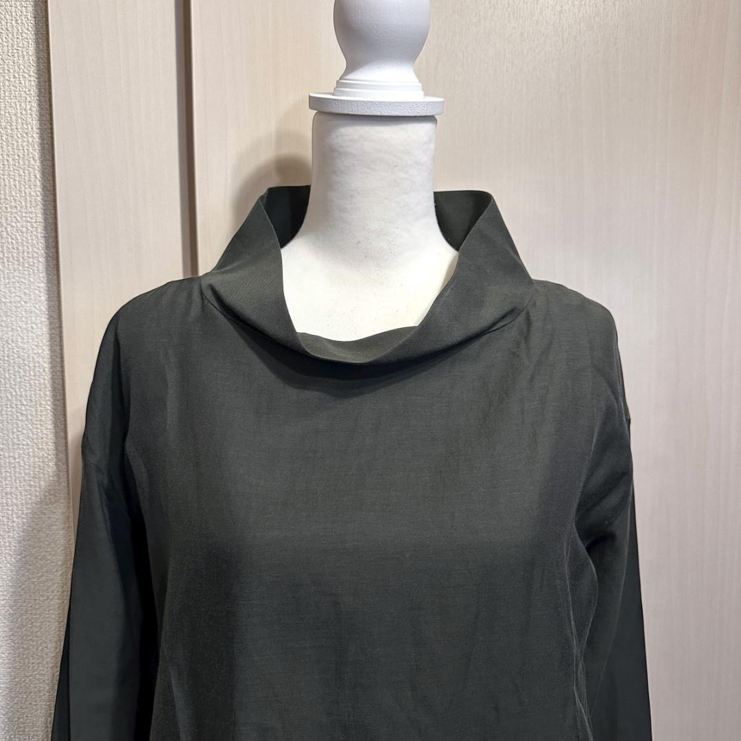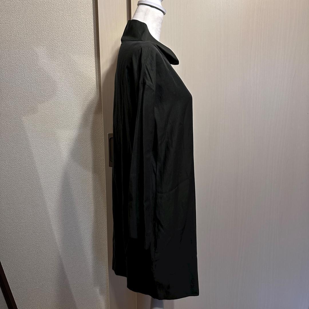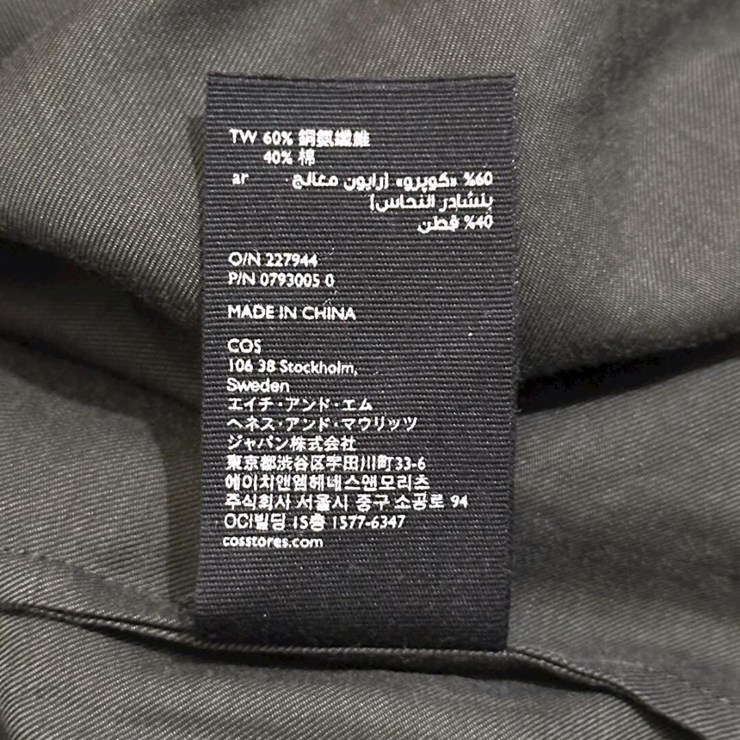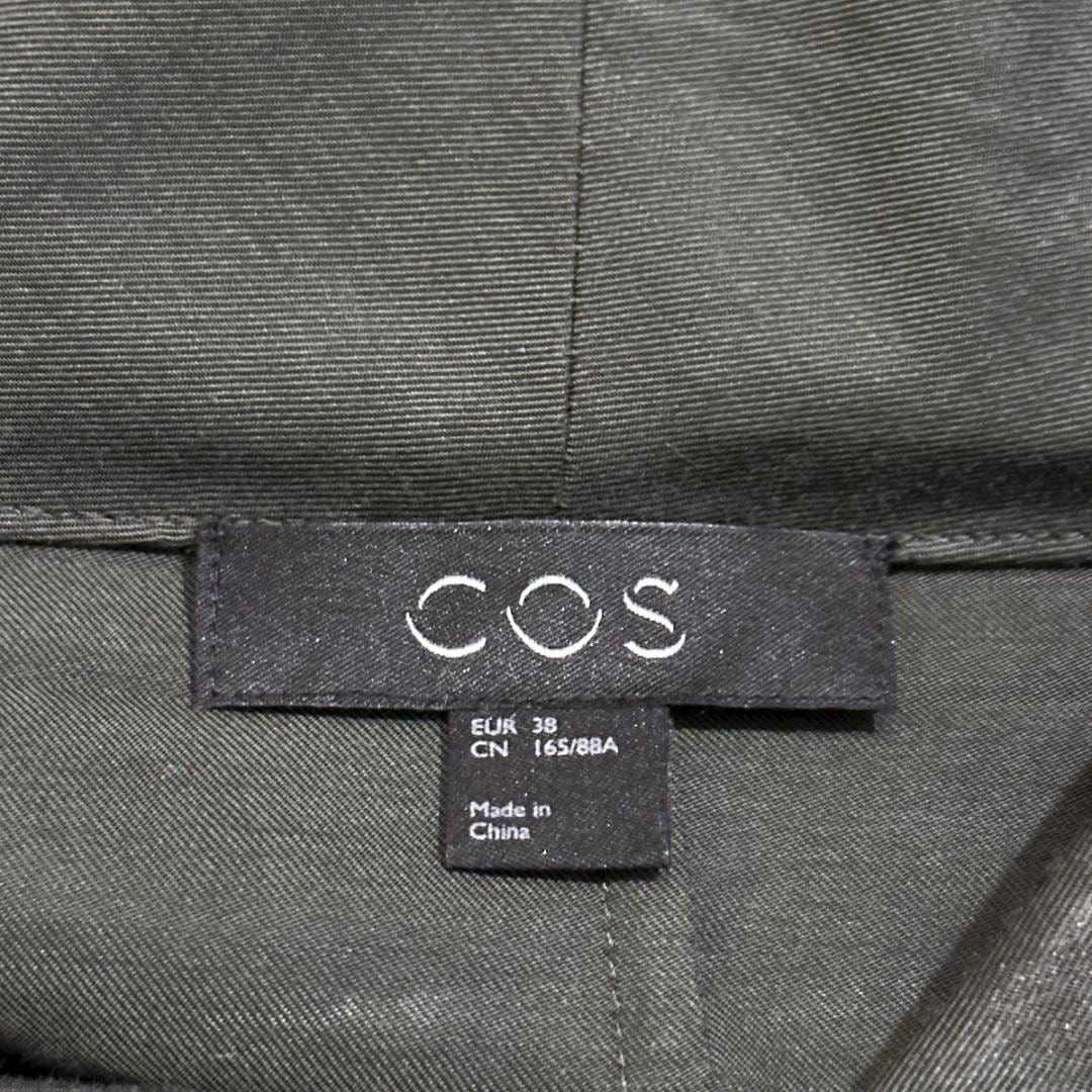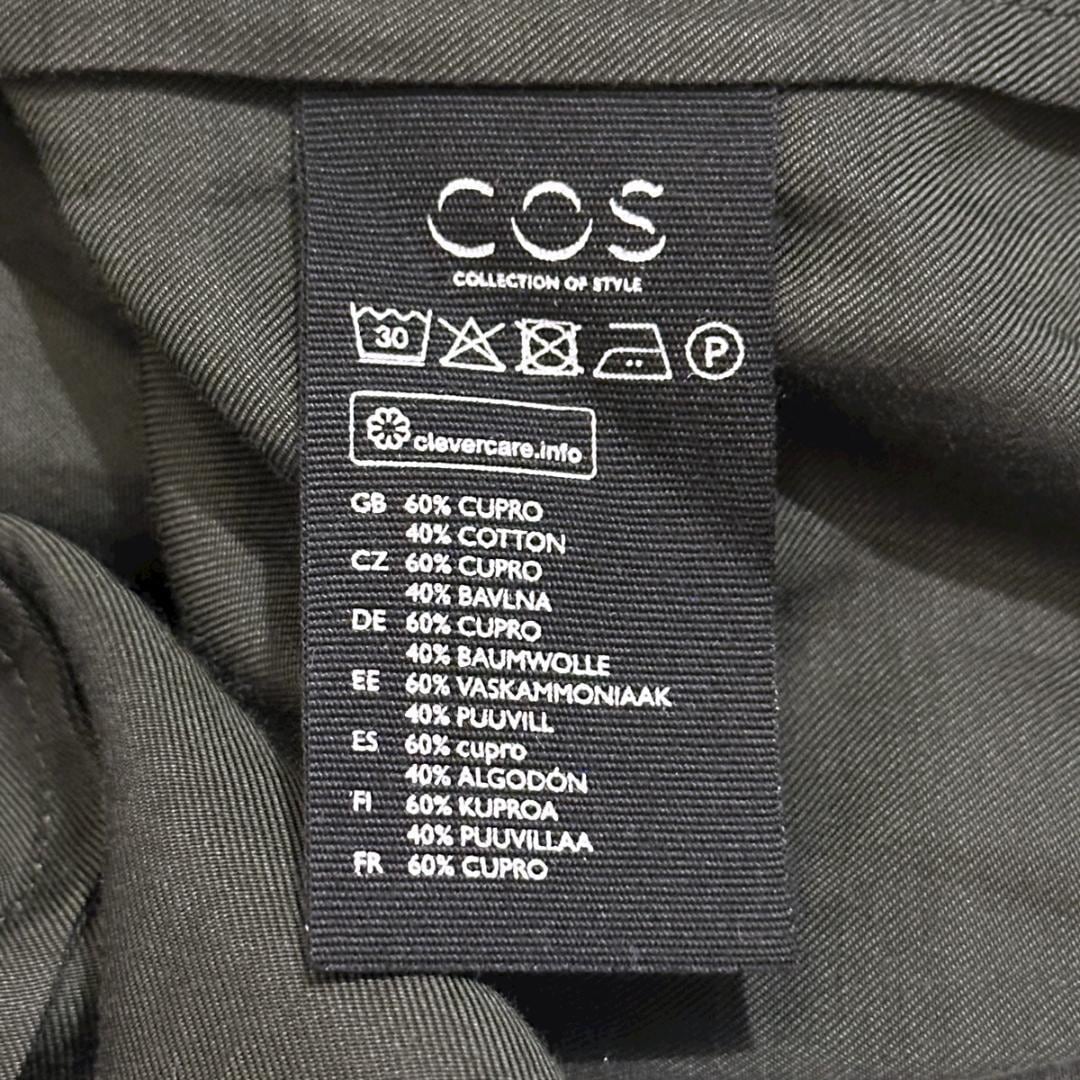 落ち着きのあるグリーンカラーで、シンプルながらも存在感のある一着。肩幅と身幅にゆとりを持たせたデザインで、リラックス感がありつつもCOSらしい洗練されたシルエットに仕上がっています。