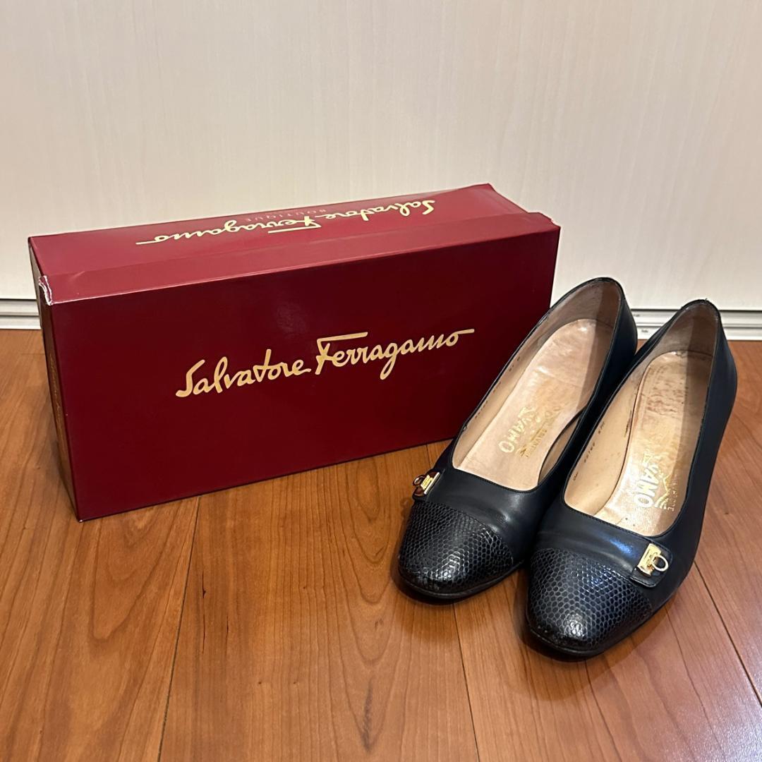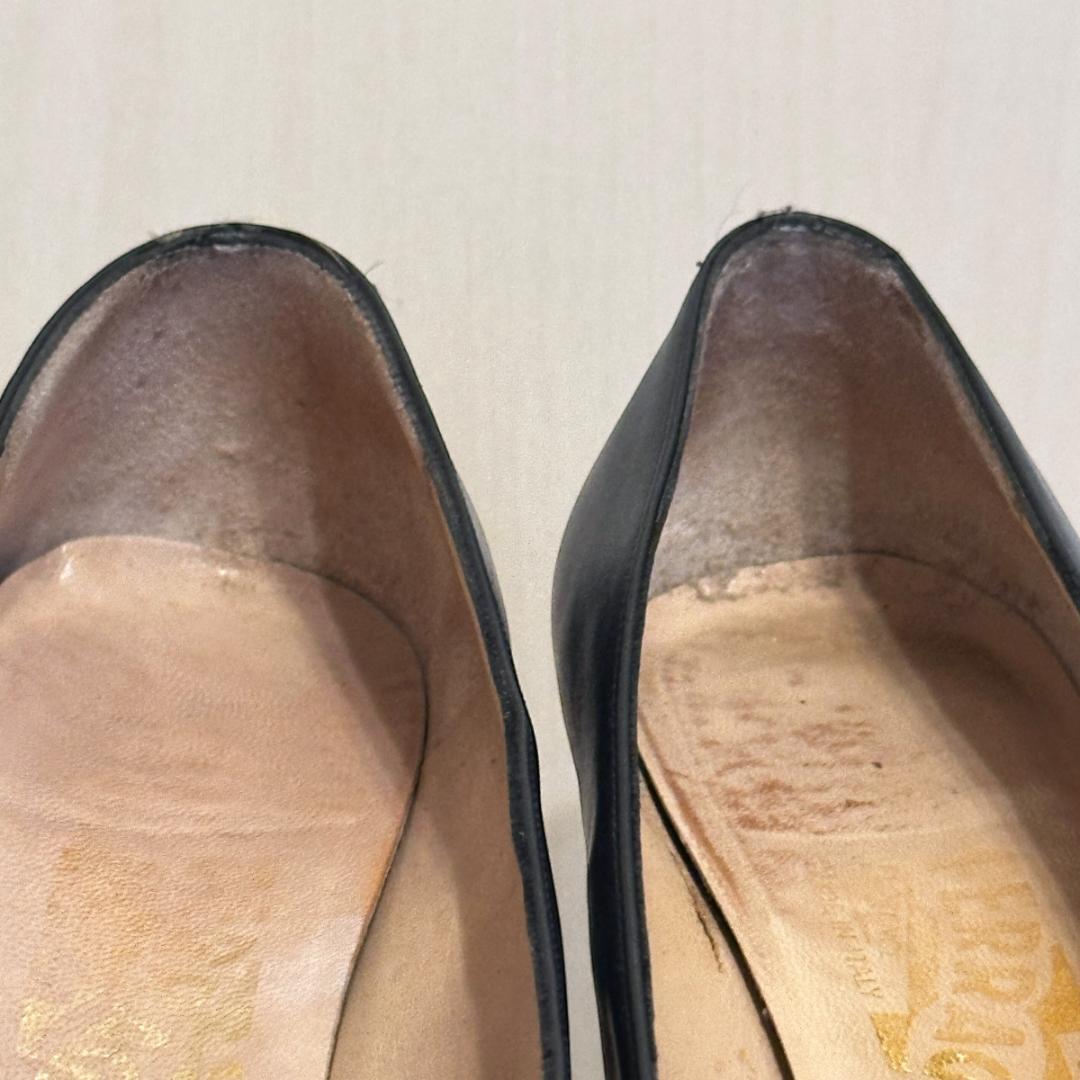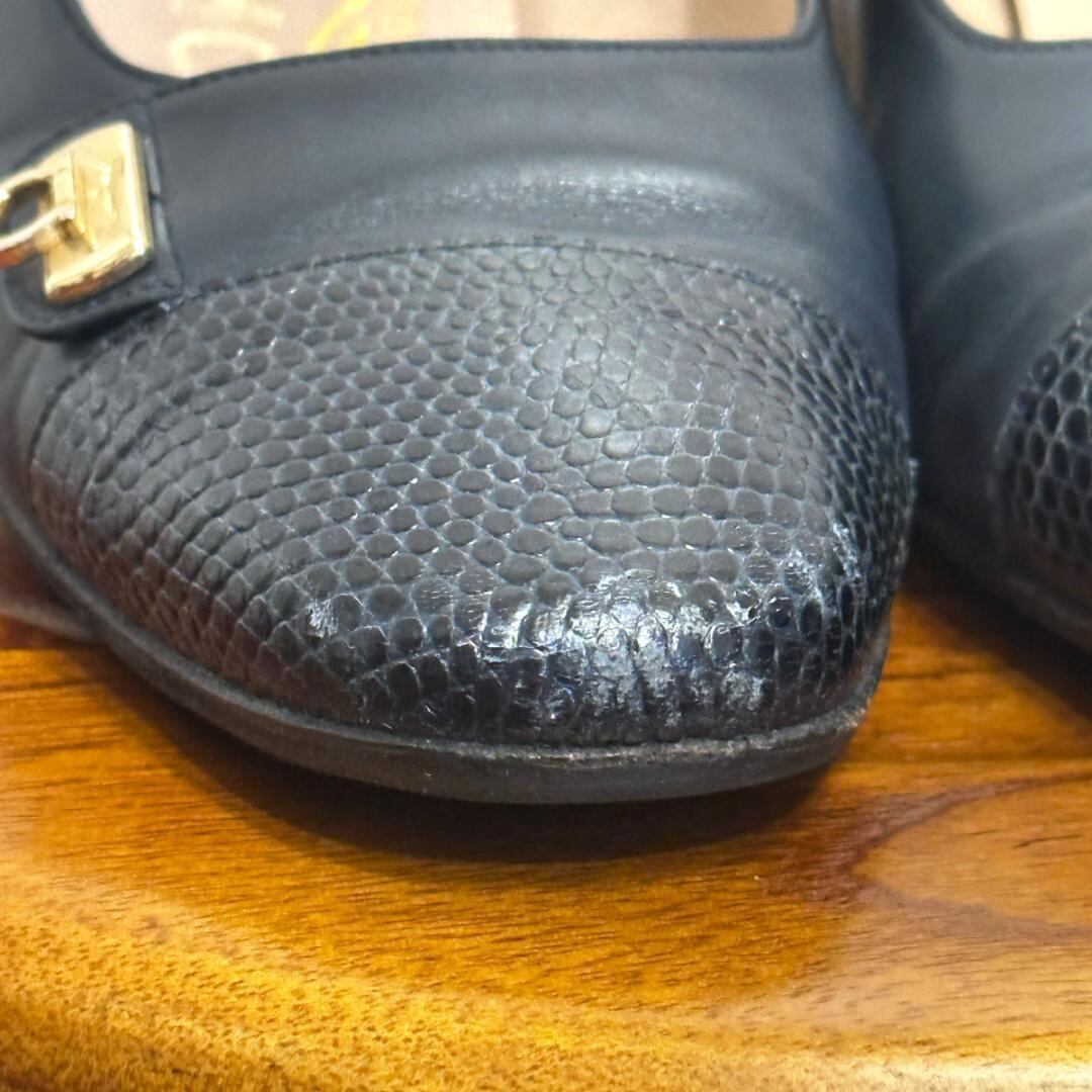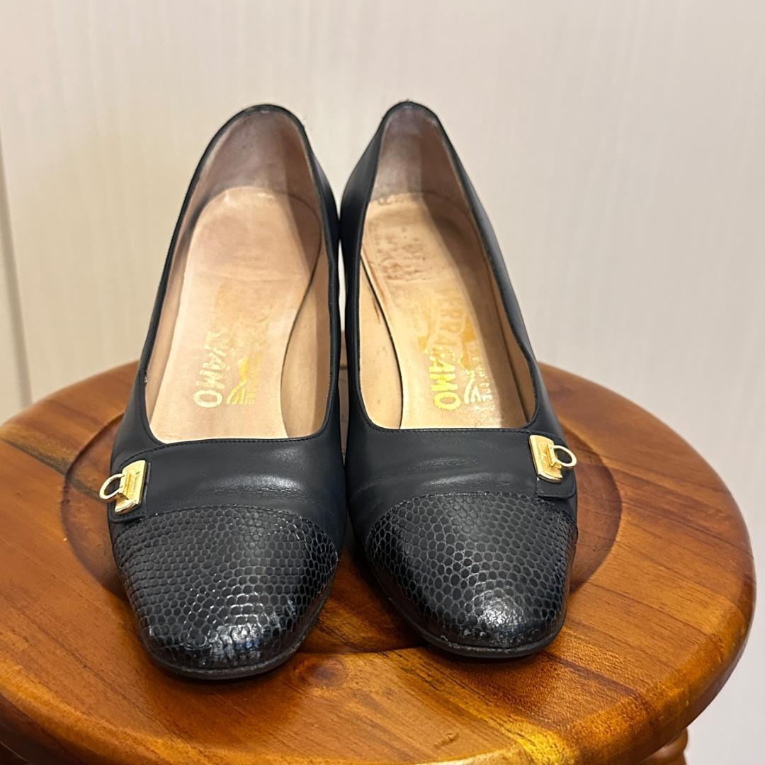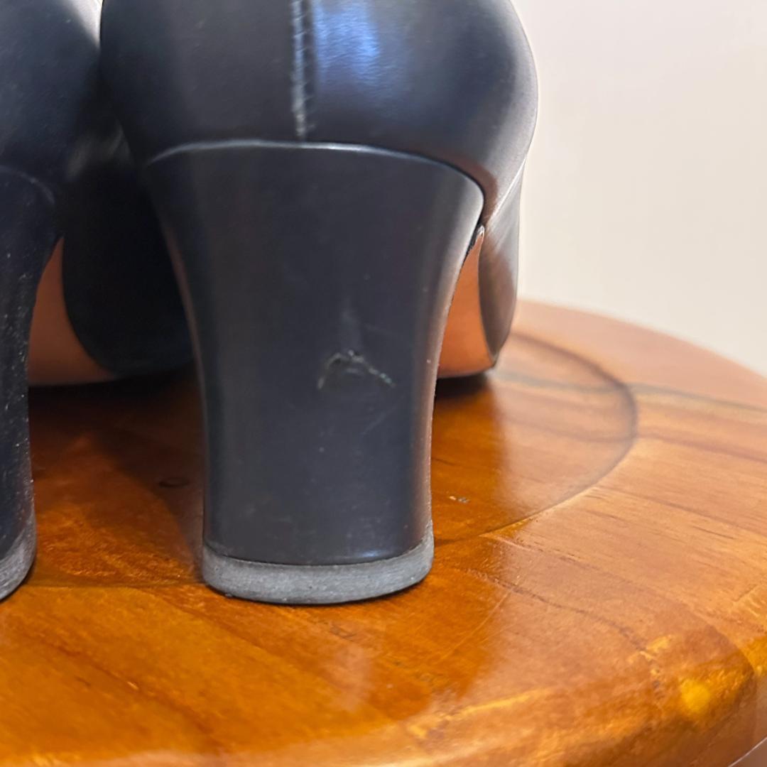 FERRAGAMO ネイビーレザーパンプス 5 1/2 sh080