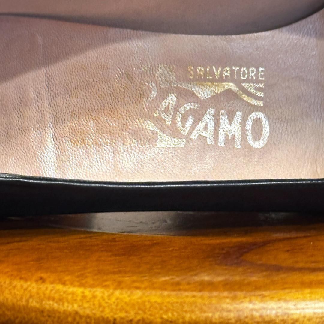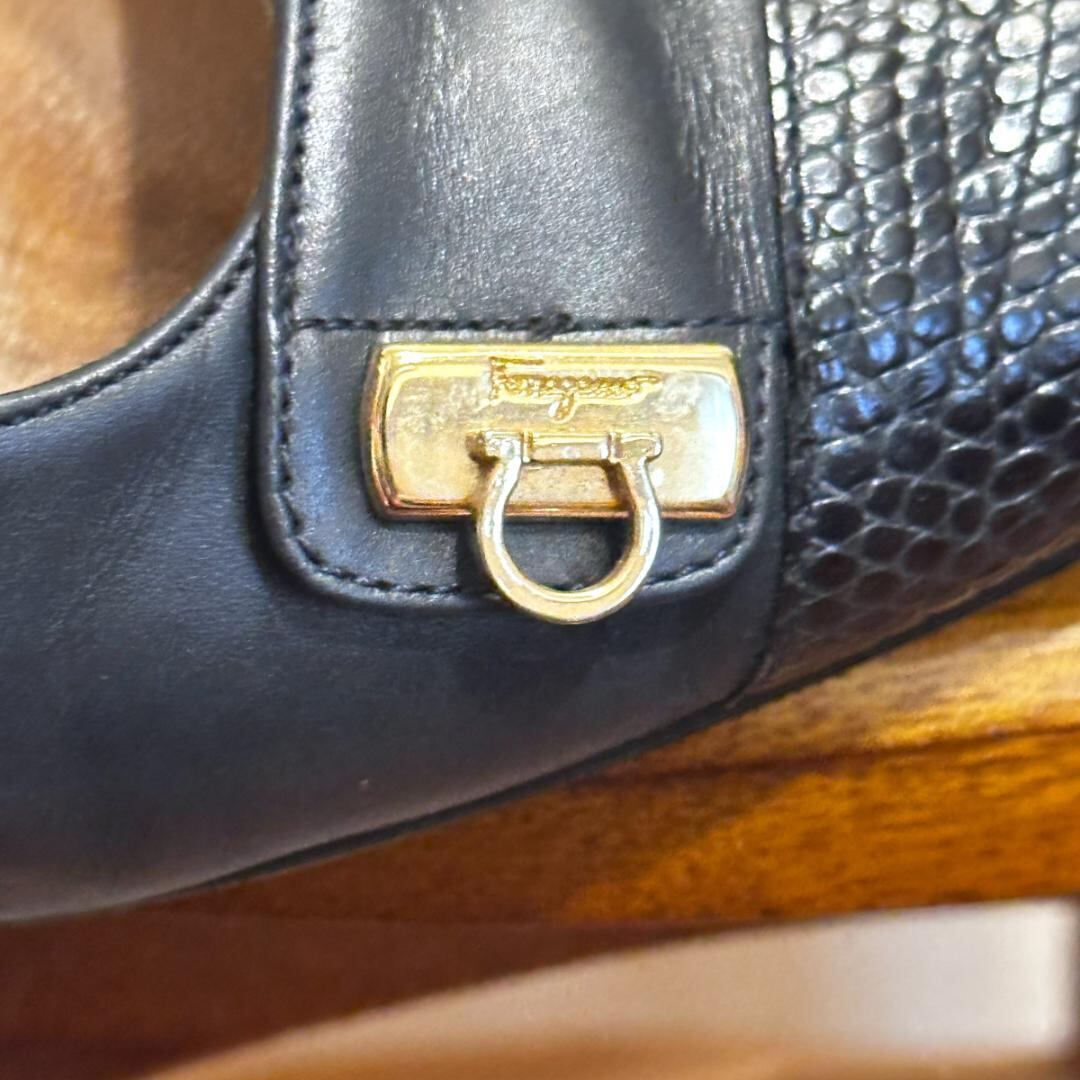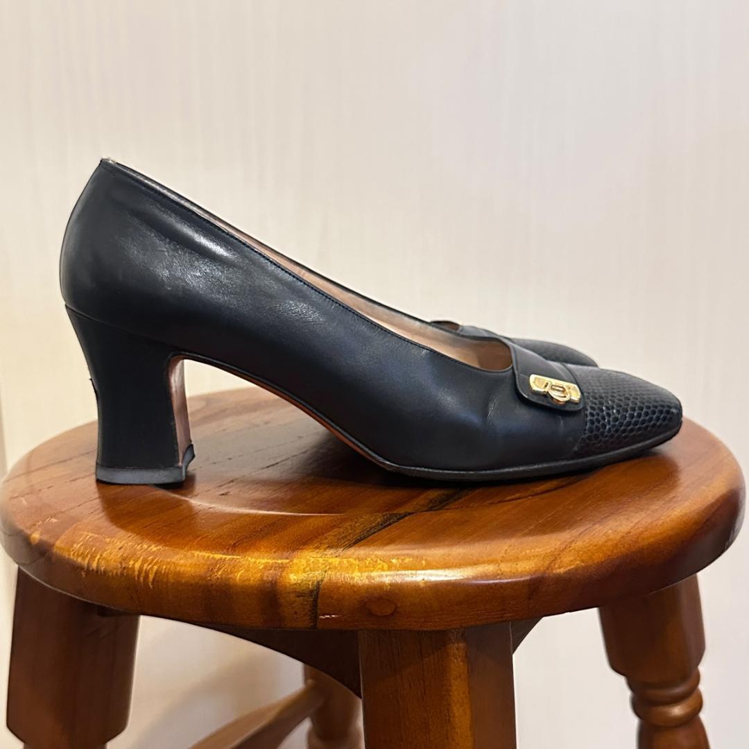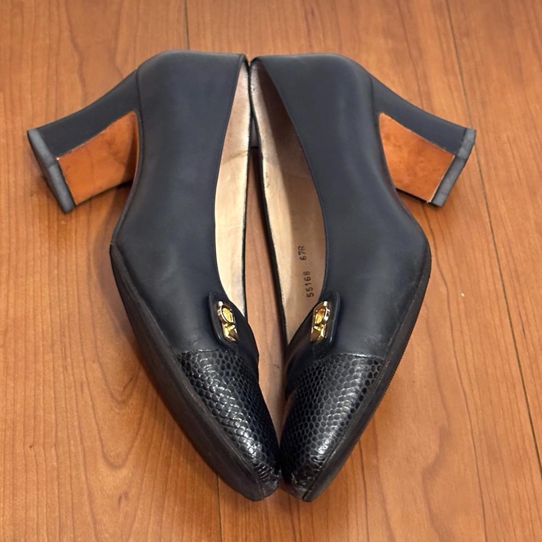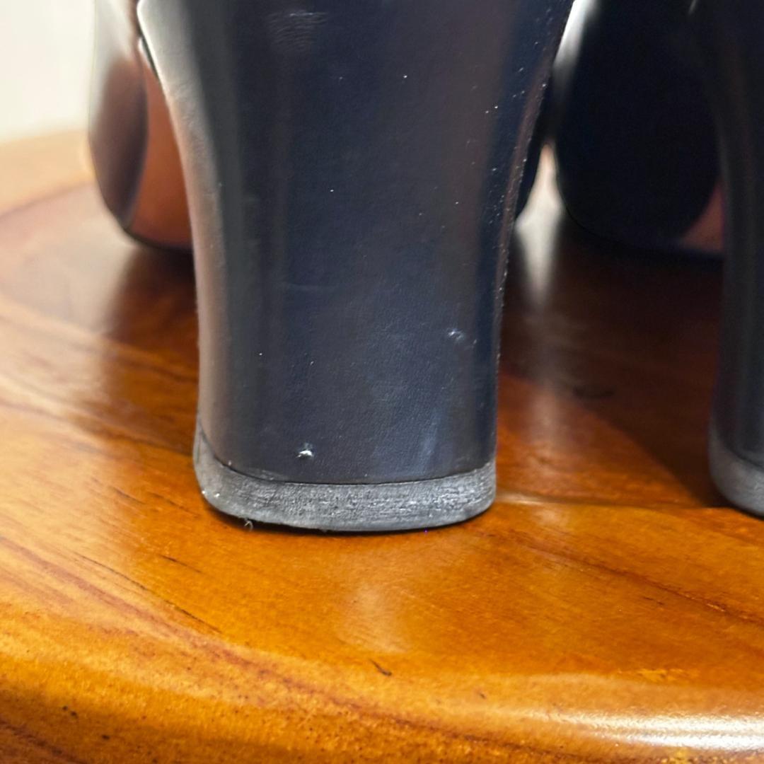FERRAGAMO ネイビーレザーパンプス 5 1/2 sh080