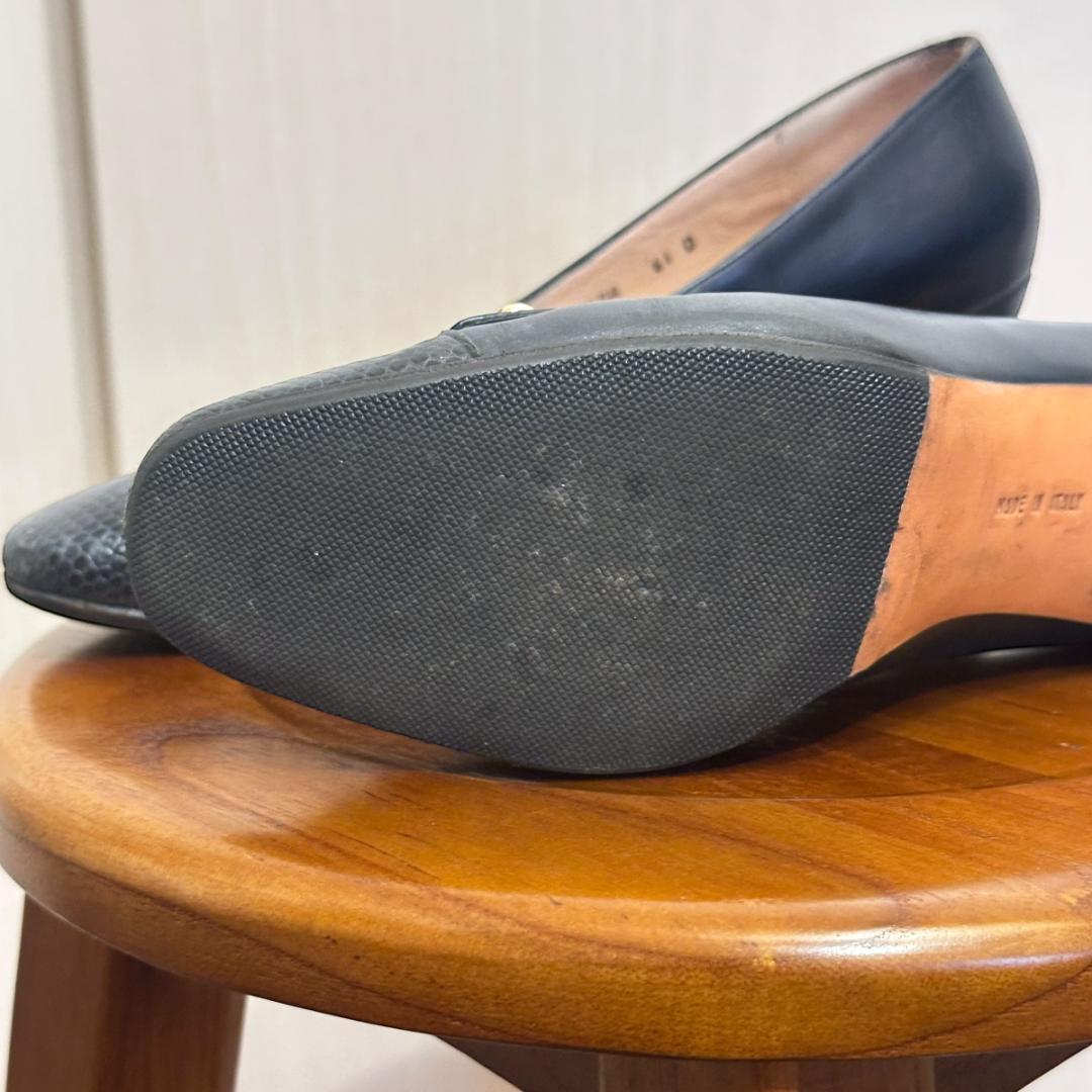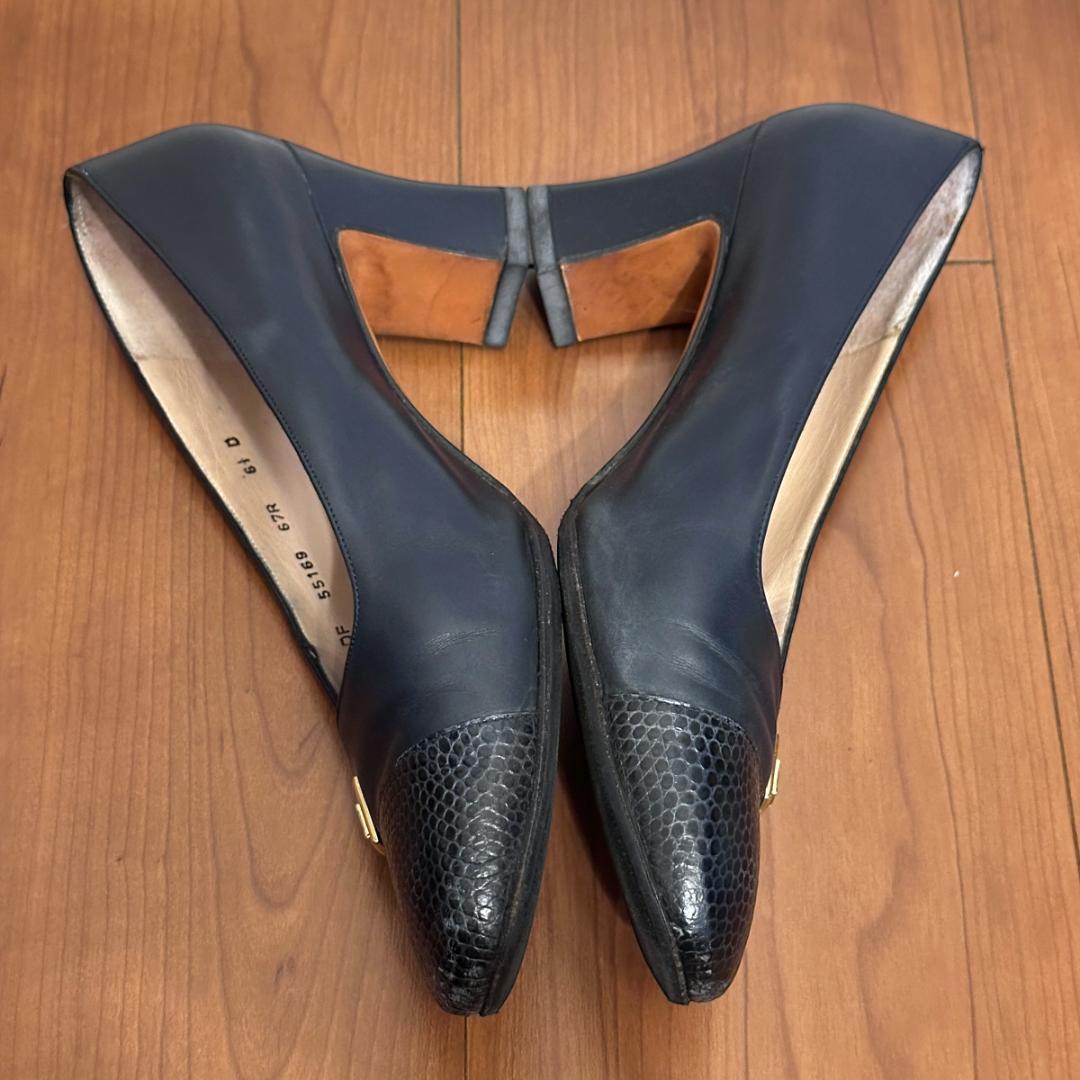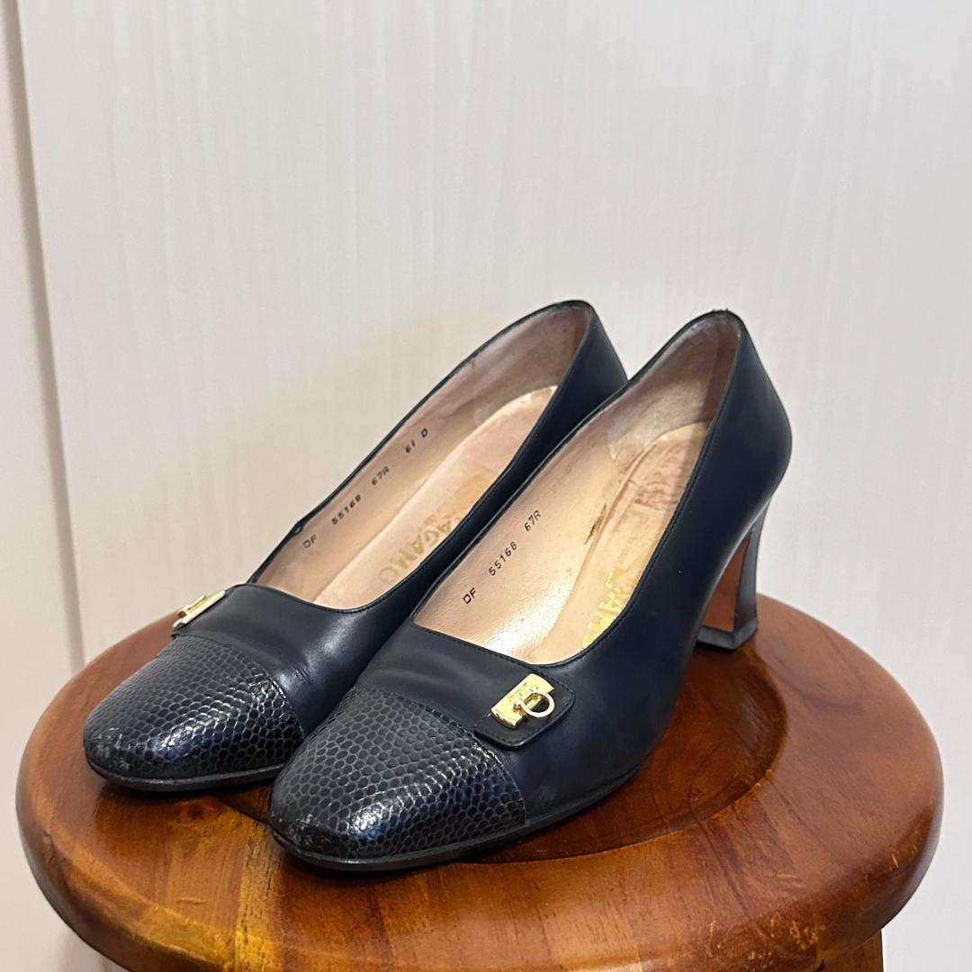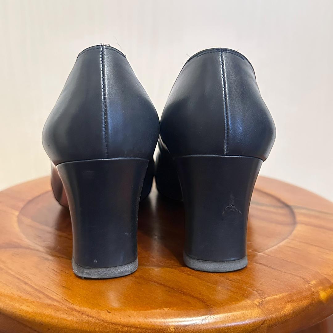 【FERRAGAMO】ネイビーレザーパンプス 5 1/2size sh080