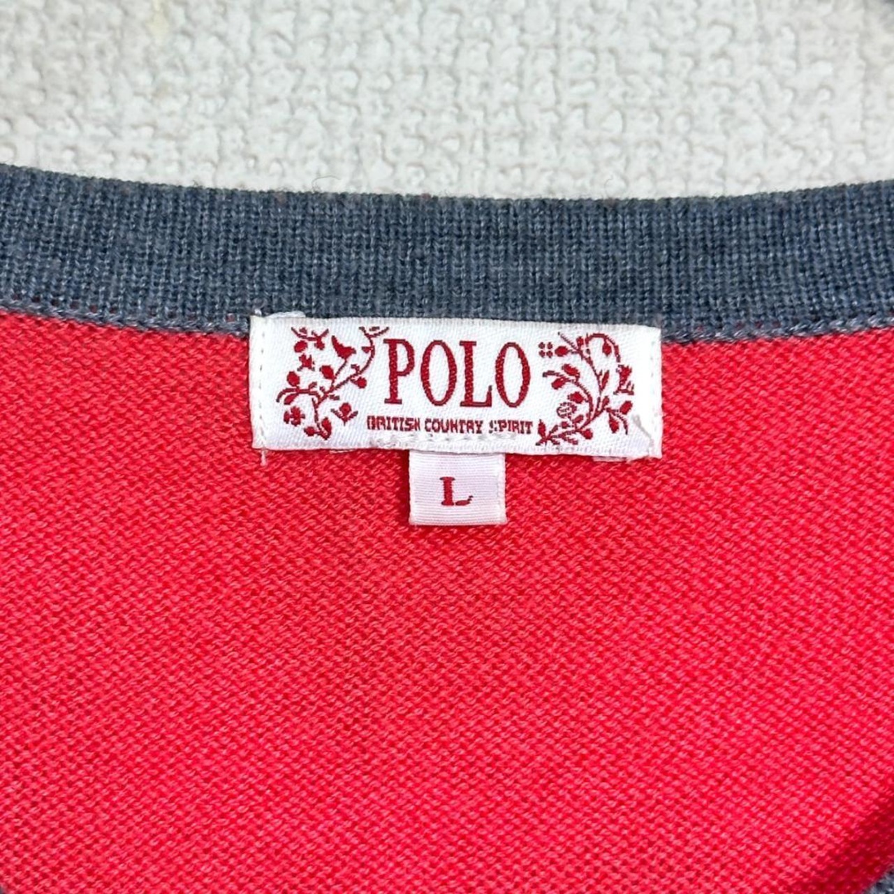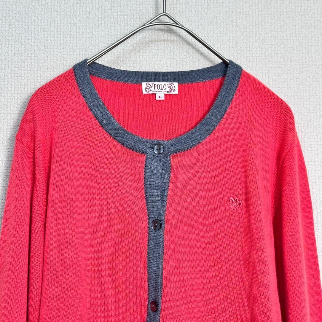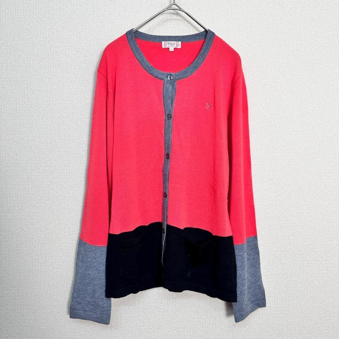 POLO ニットカーディガン ピンク×グレー×黒 サイズL HR2329