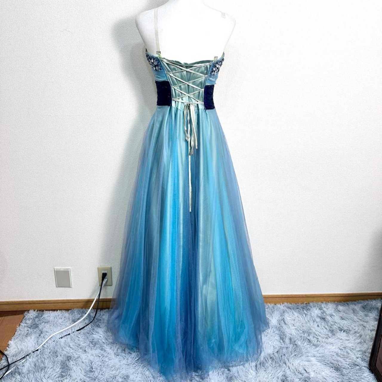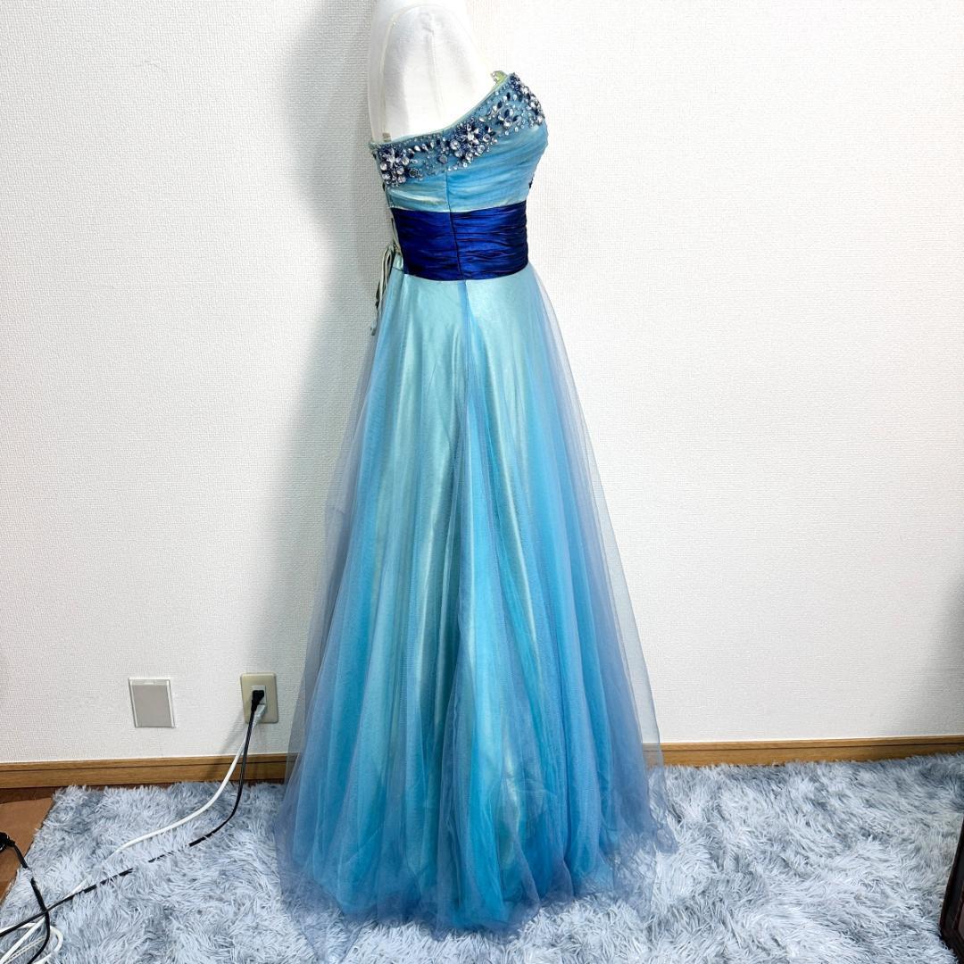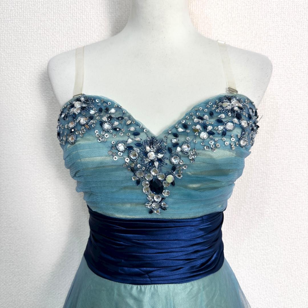 NIGHT 1のドレスです。ブルー系カラーで上品な雰囲気があり、フォーマルシーンやパーティーシーンなどにも合わせやすいデザインの一着。落ち着いた色合いで華やかさがあり、特別なシーンにも取り入れやすいアイテムです。
